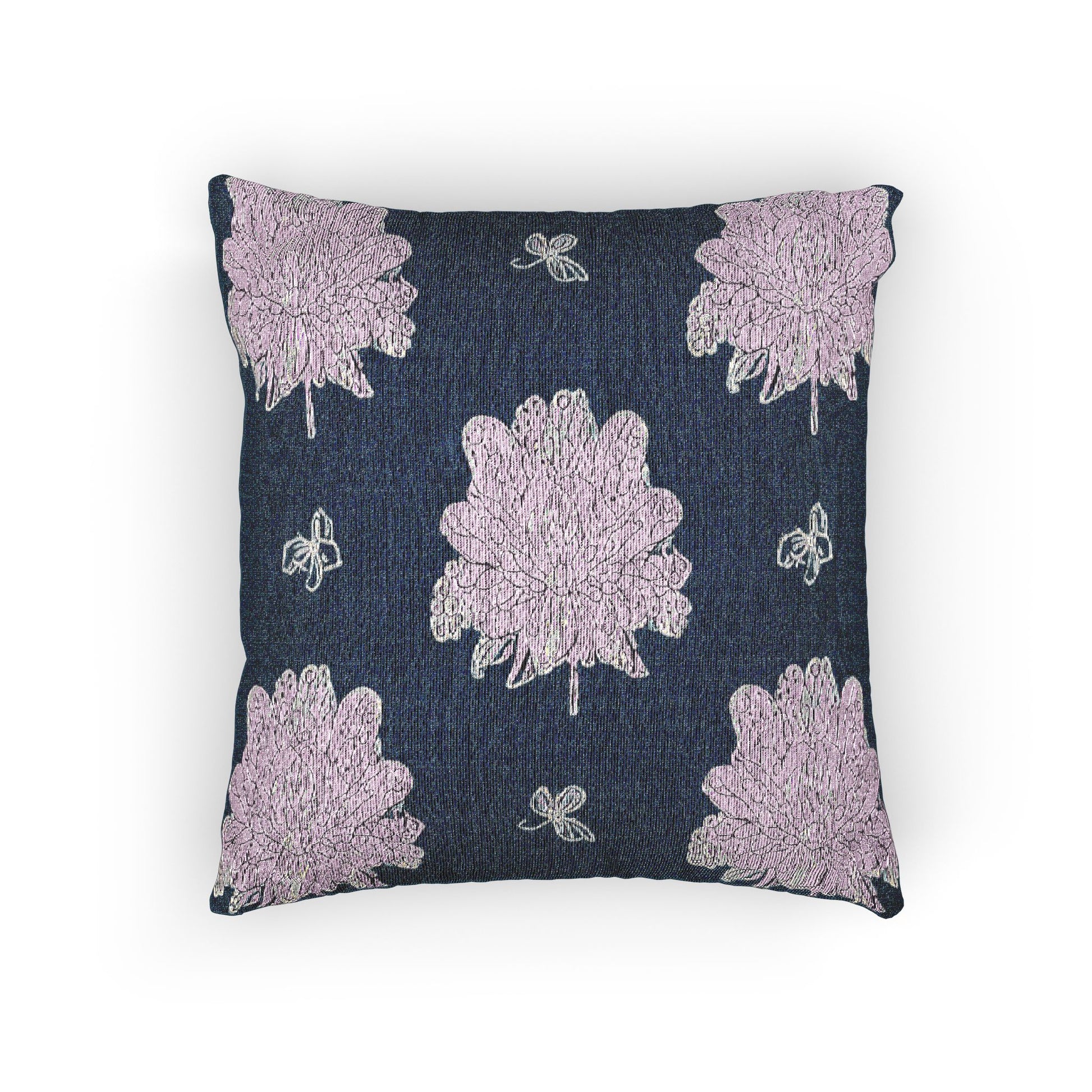 Purple White Floral Butterflies Woven Pillow, 17" x 18"