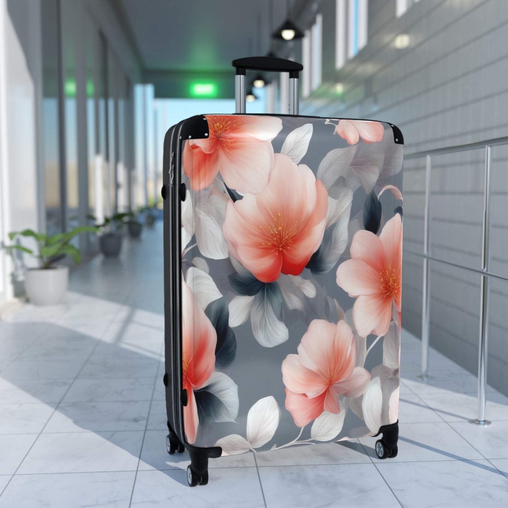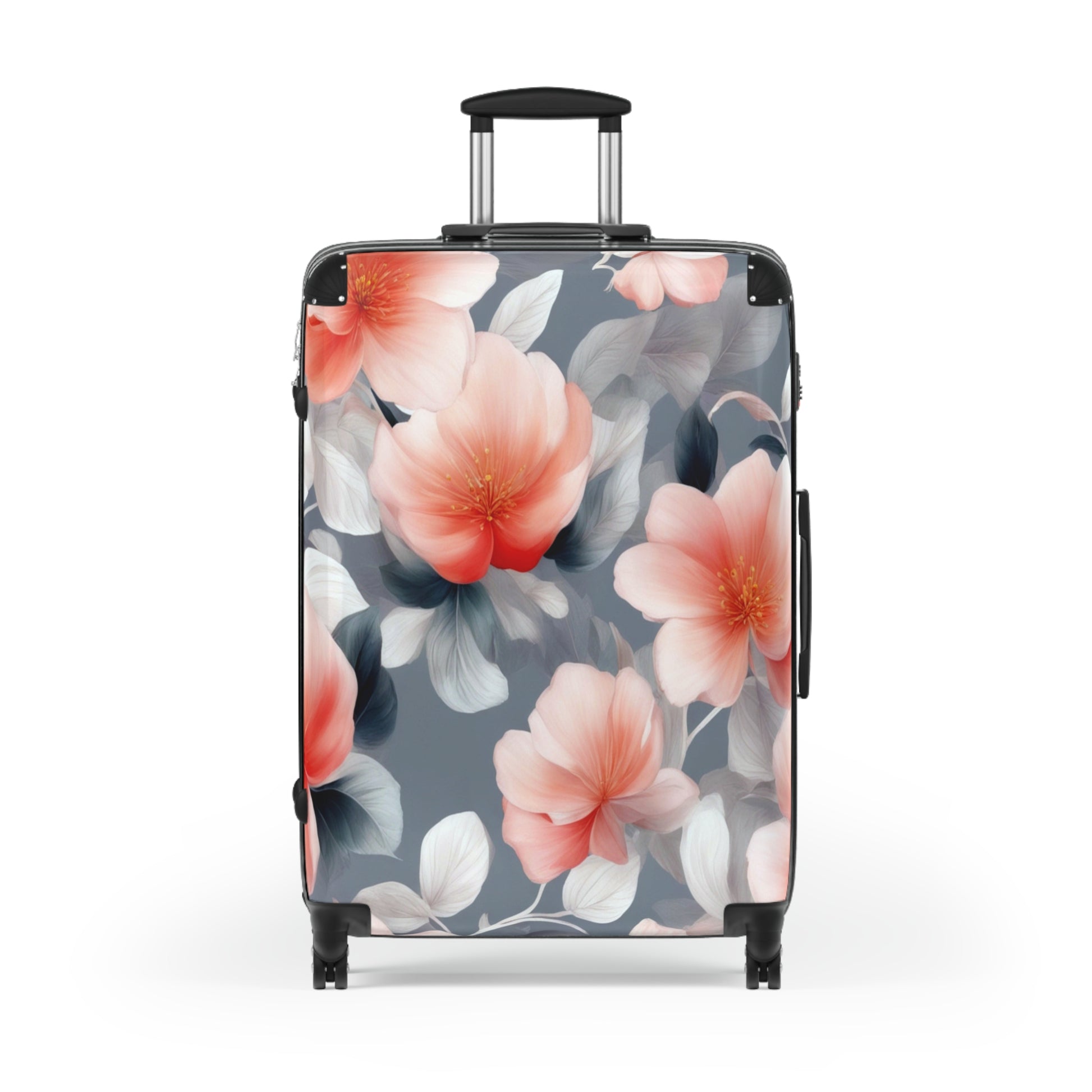 Red Blossom Floral Bunch Large Suitcase with built in lock, 4 double-wheels, telescopic handle, and ABS back hard-shell