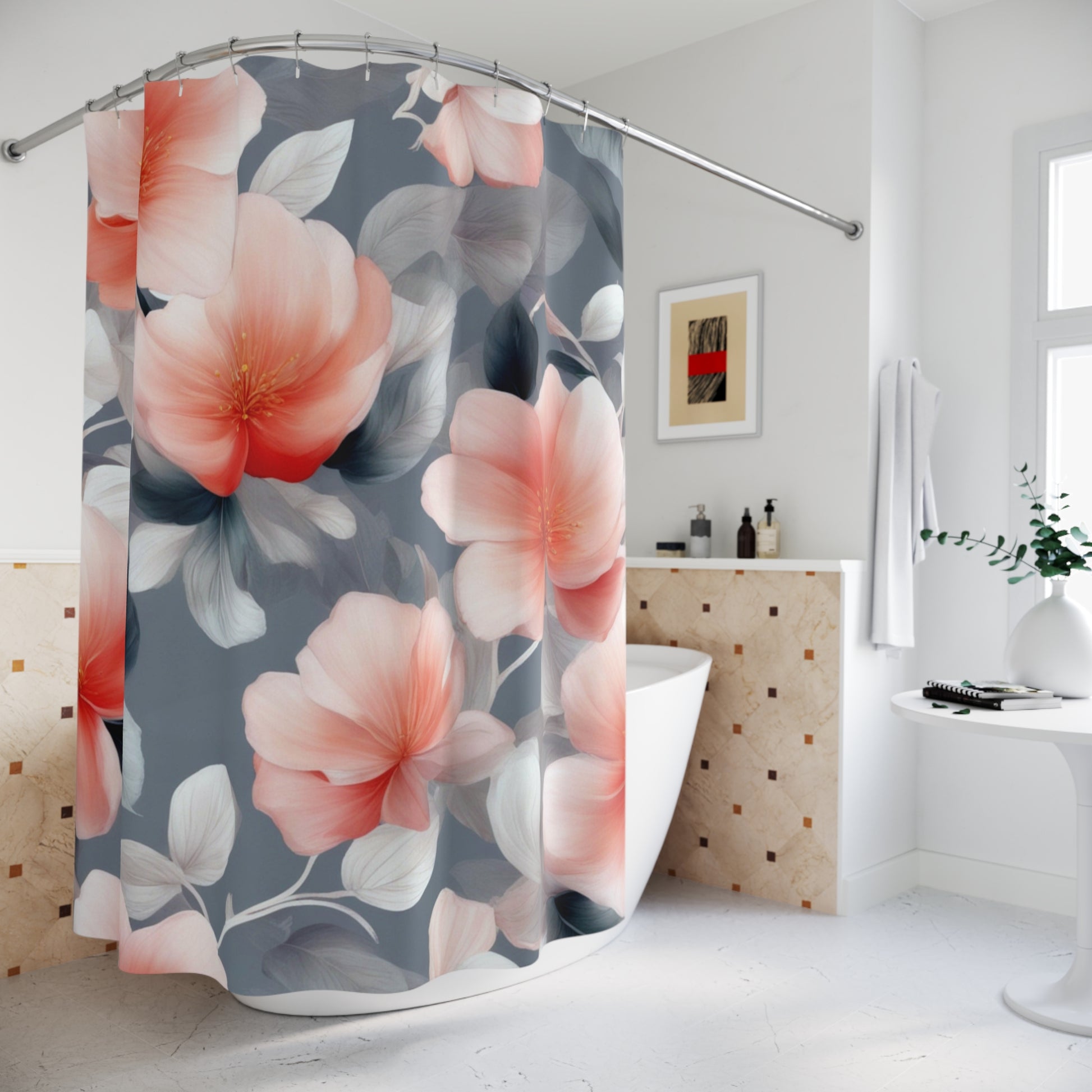 Red Blossom Floral Bunch Shower Curtains, 71" x 74"