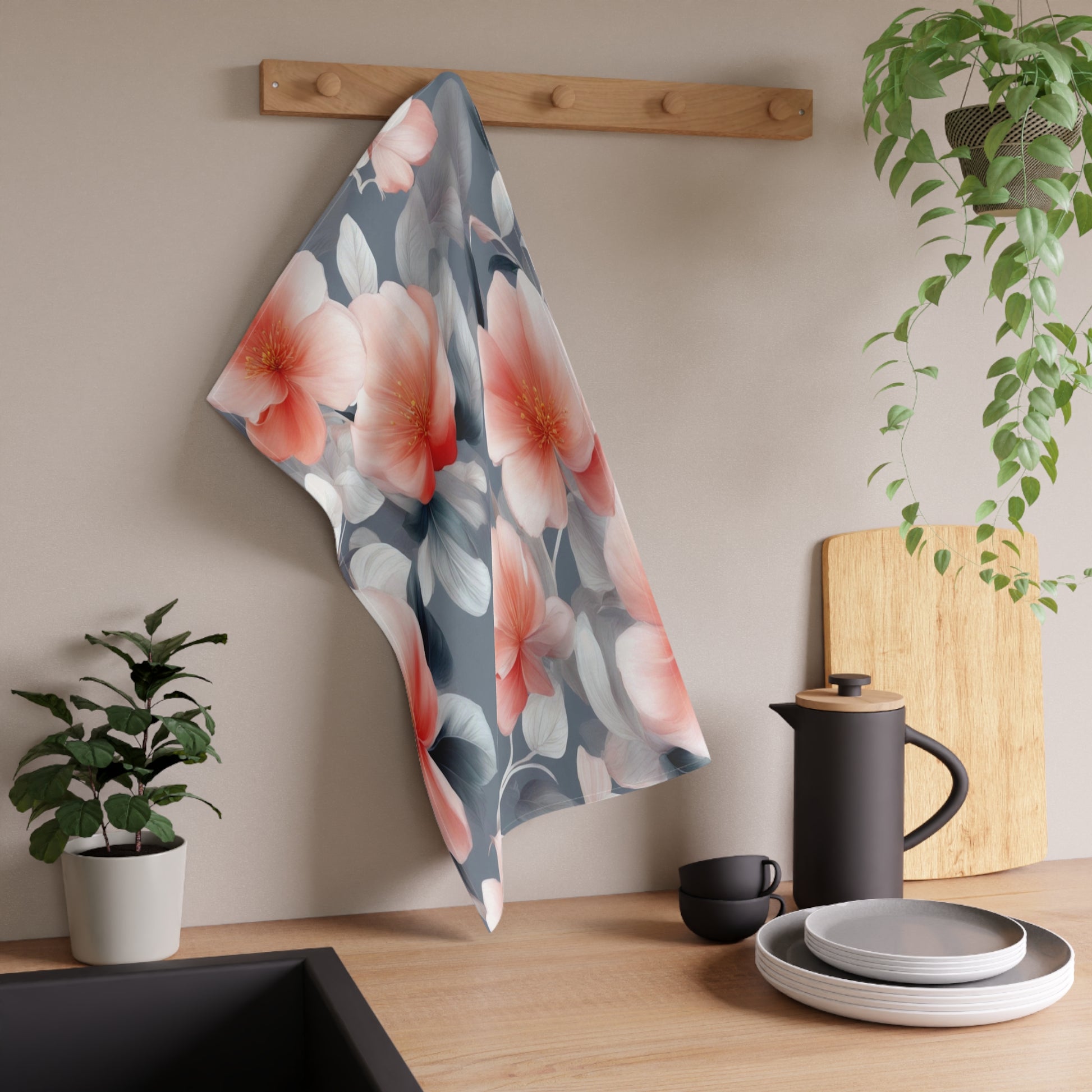 Red Blossom Floral Bunch Tea Towels (cotton, poly), 18" x "30