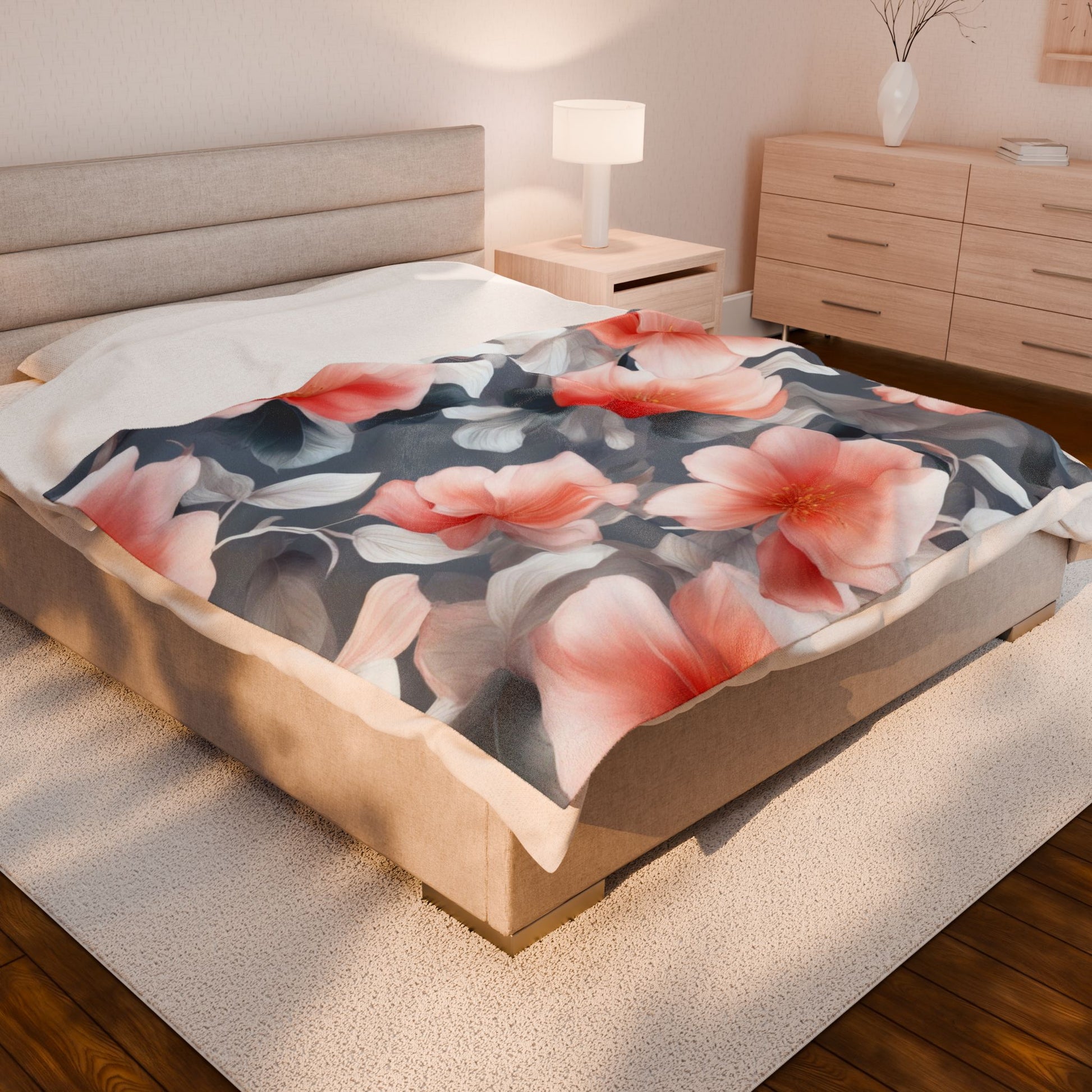 Red Blossom Floral Bunch Velveteen Plush Blanket, 60" x 80"