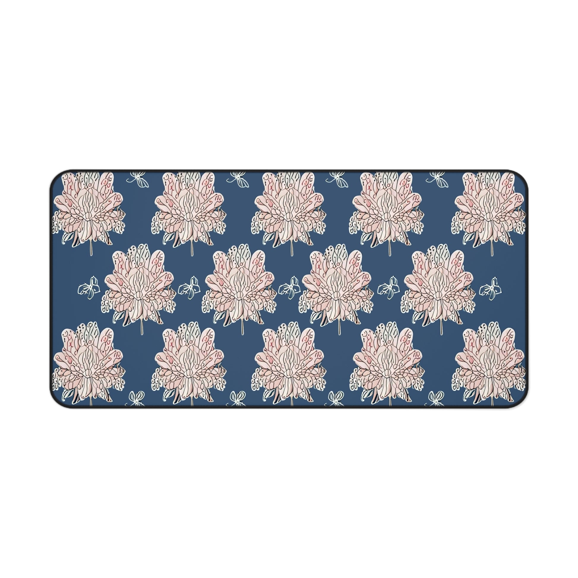 Rose White Floral Butterflies 16" x 32" Desk Mat