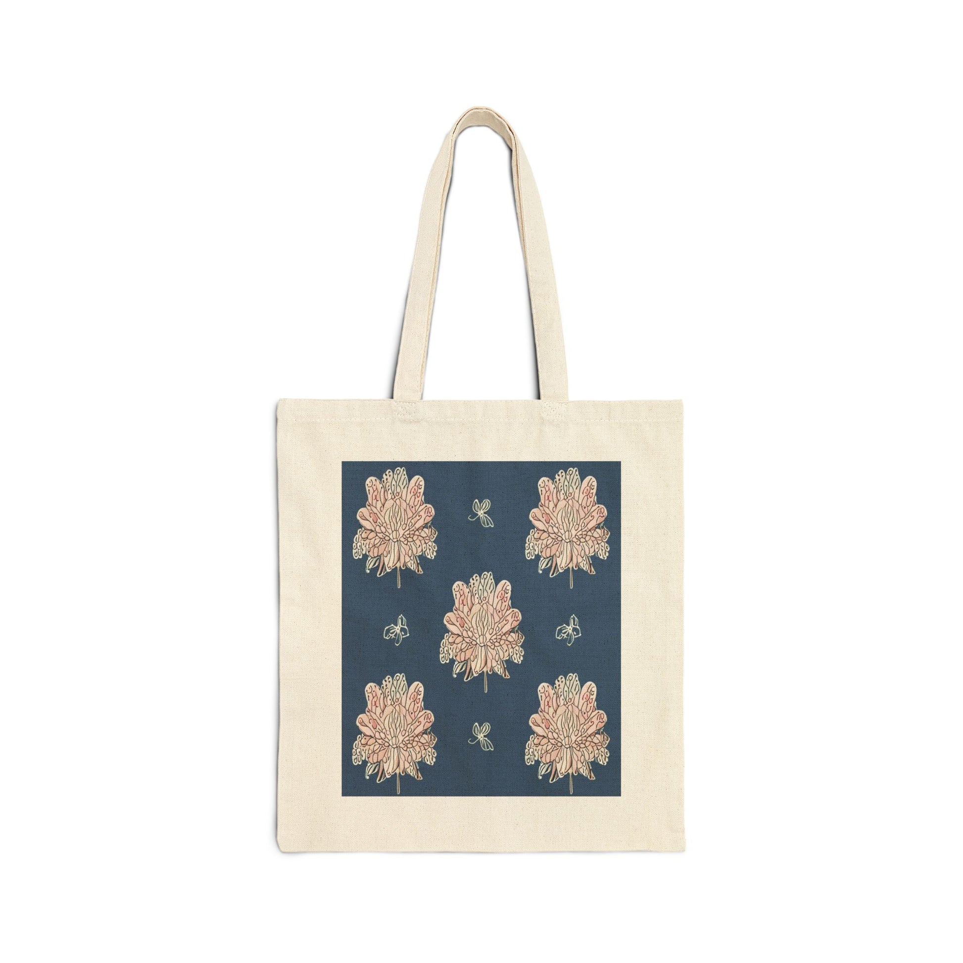 Rose White Floral Butterflies Cotton Canvas Tote Bag