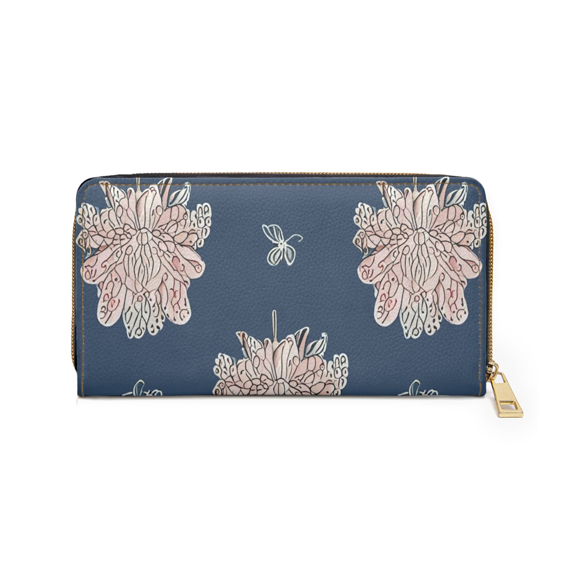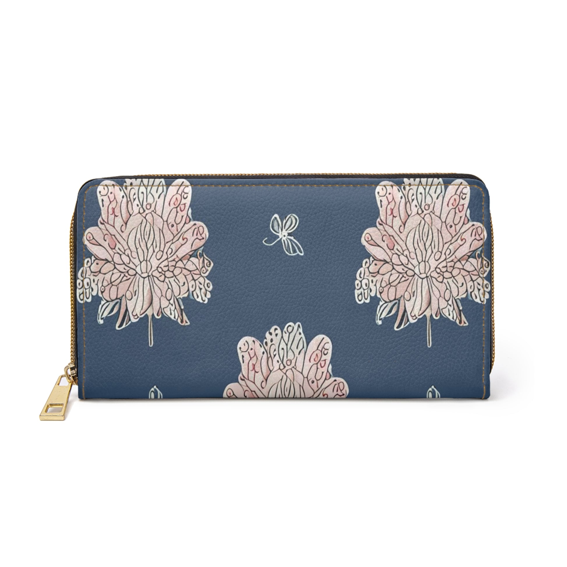 Rose White Floral Butterflies Elegant Abstract Zipper Wallet - Stylish & Functional Accessory for Everyday Use