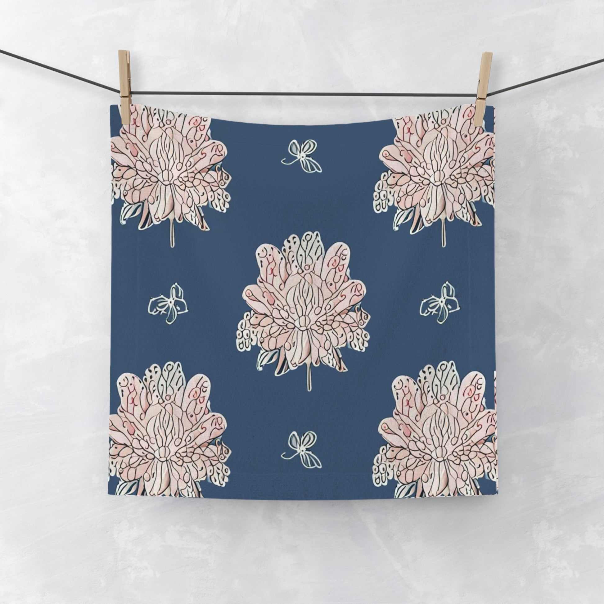 Rose White Floral Butterflies Face Towel, 13" x 13"