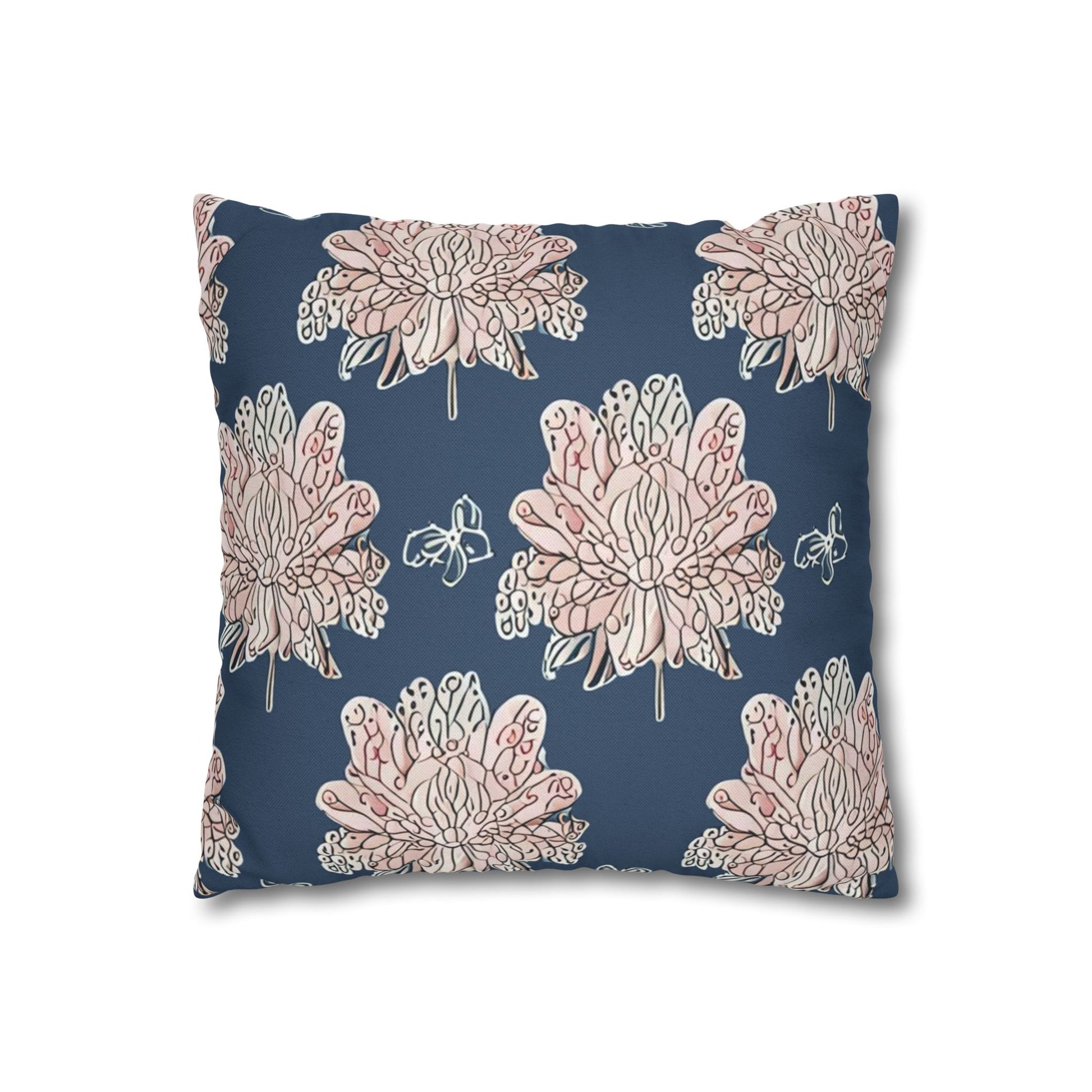 Rose White Floral Butterflies Spun Polyester Square Pillowcase, 14" x 14"