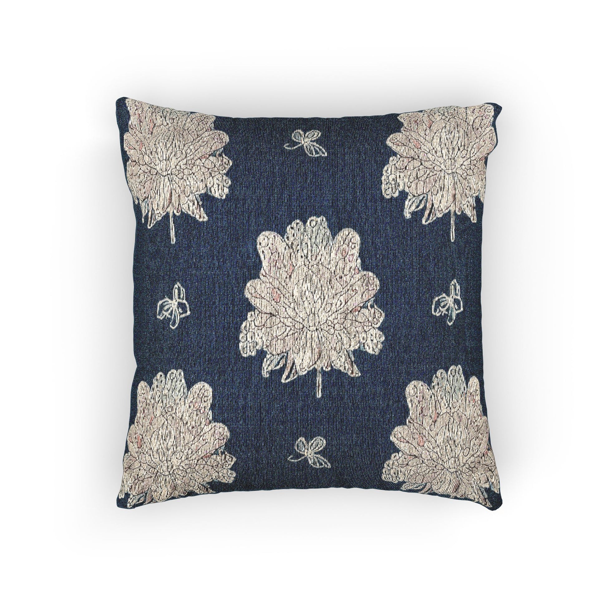 Rose White Floral Butterflies Woven Pillow, 17" x 18"