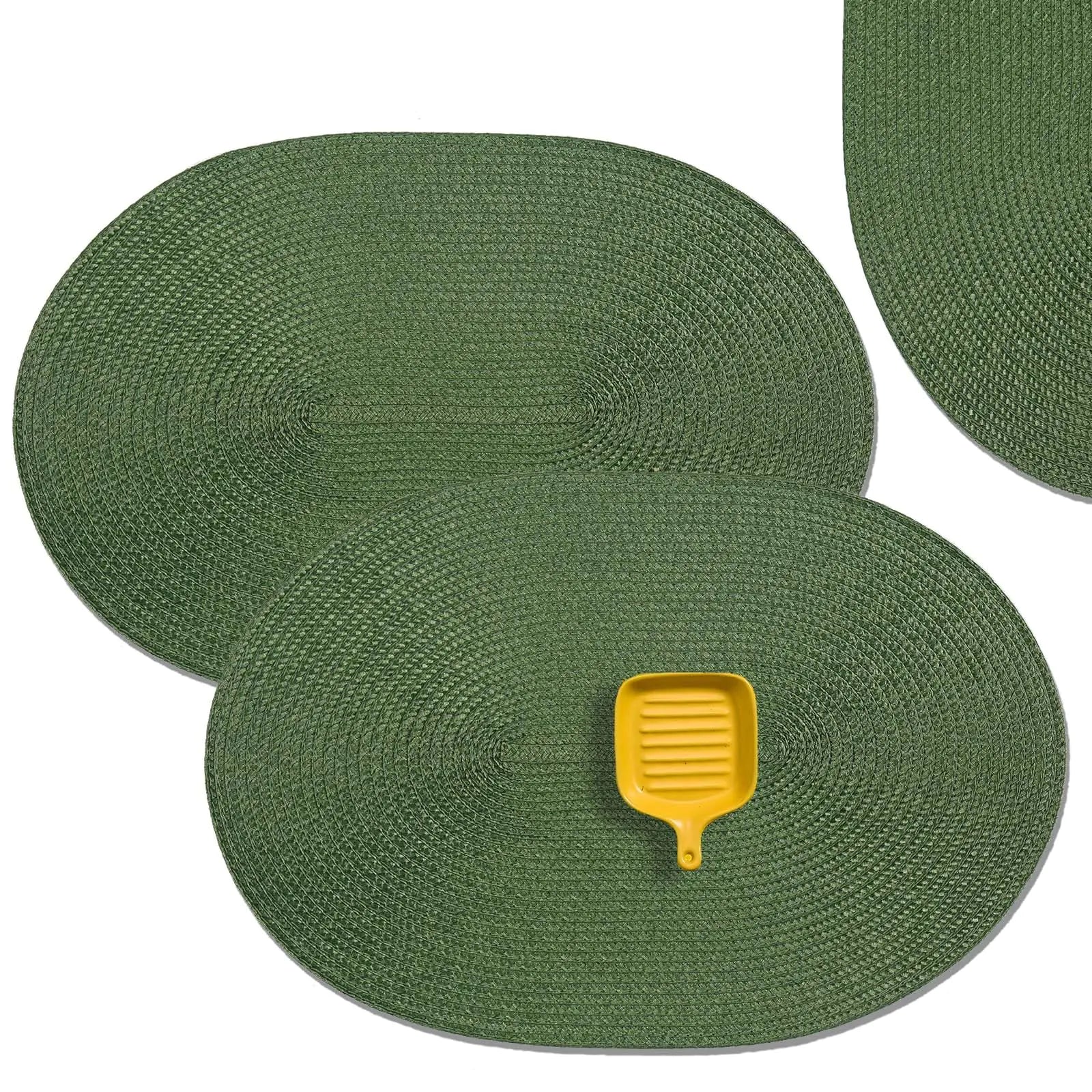 Set of 6 Oval Green Placemats – 18" x 12" Washable Woven Vinyl, Heat-Resistant, Non-Slip Table Mats for Dining Table