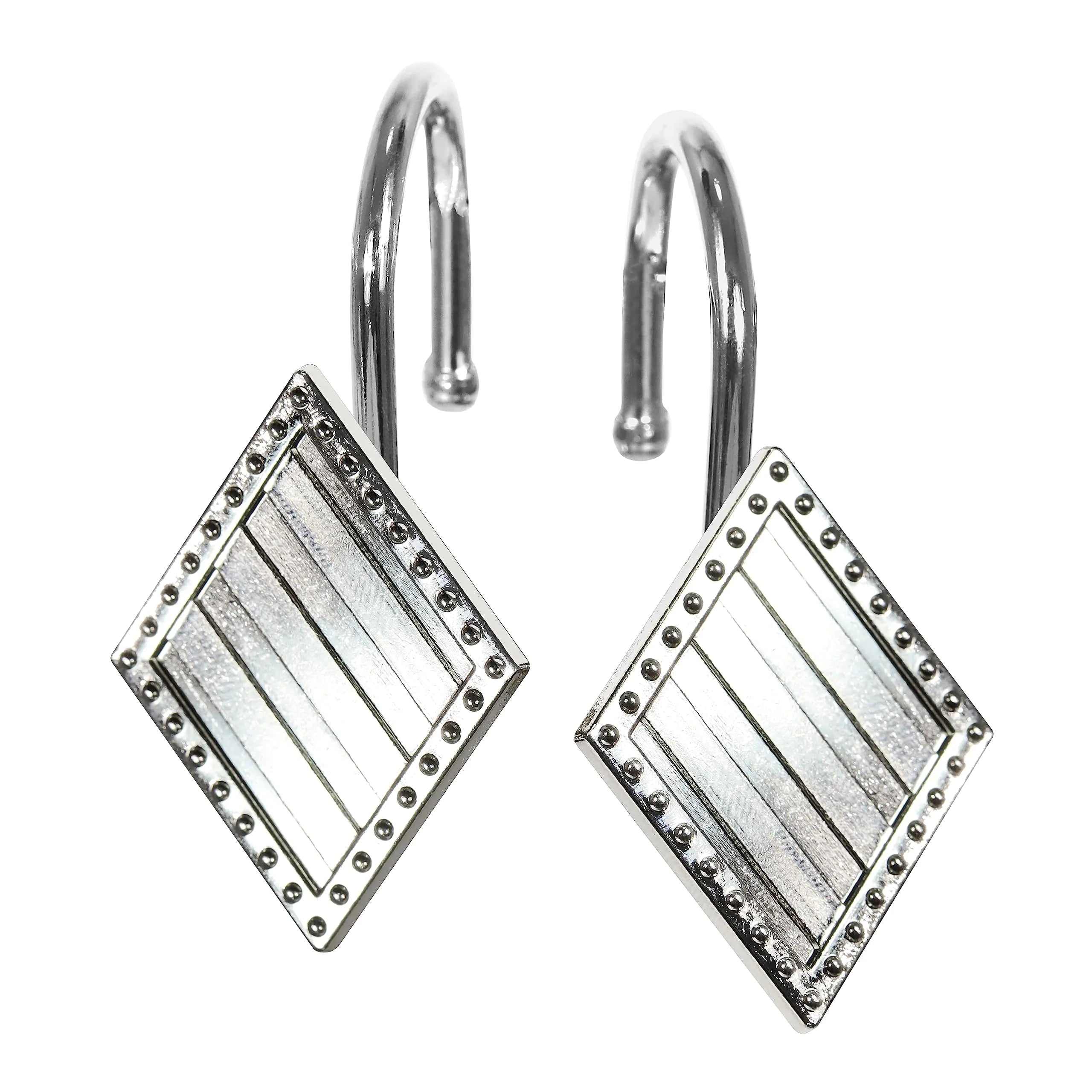 Shower Curtain Hooks, Rustproof Brushed Nickel Decorative Metal Rings with Diamond Design – Set of 12