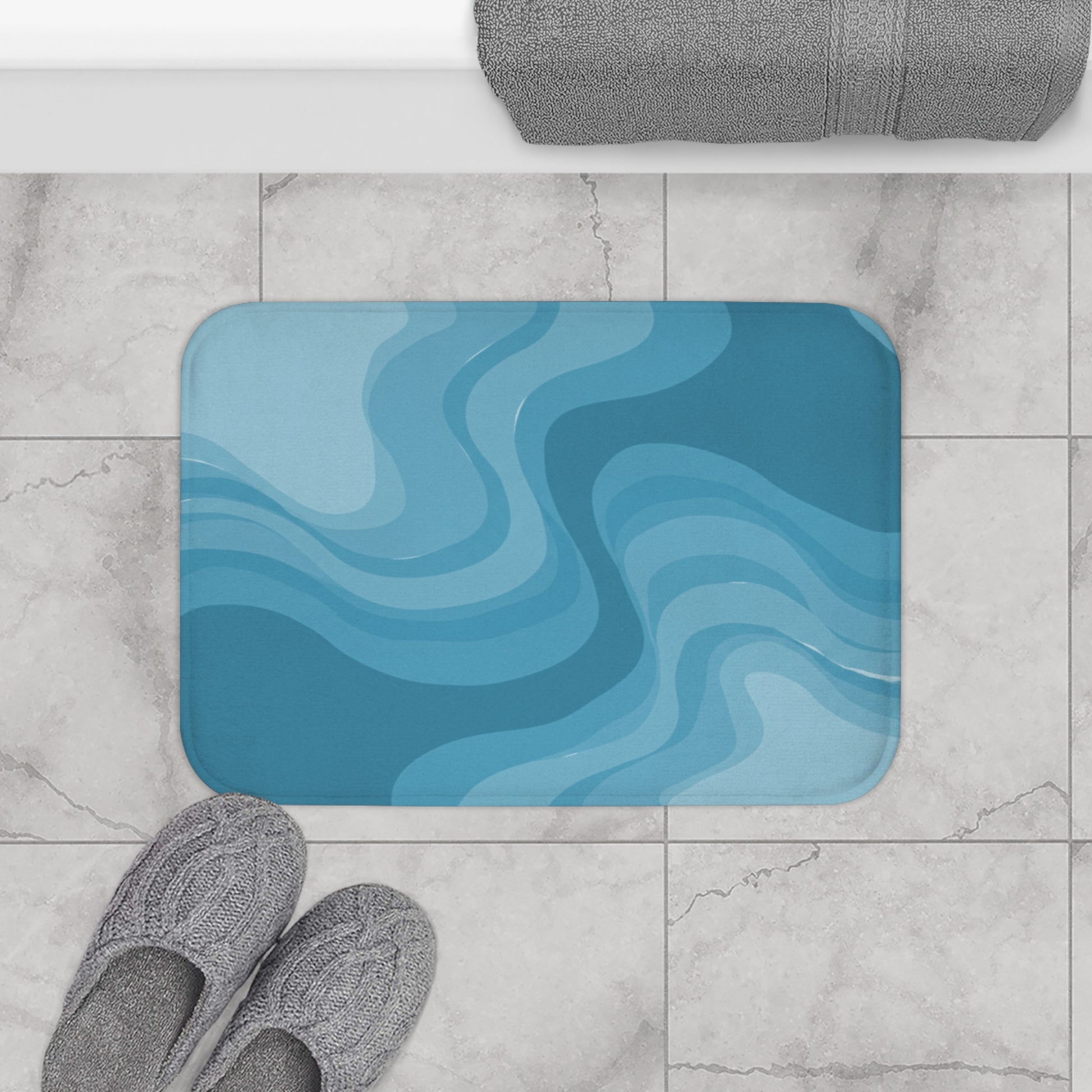 Sky Blue Wavey 24" x 17" Bath Mat