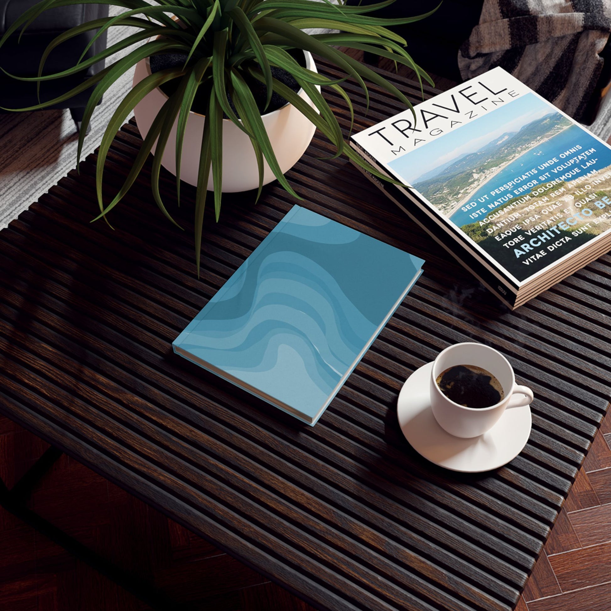 Sky Blue Wavey 5.2" x 7.4" Hard Backed Journal with 128 blank pages