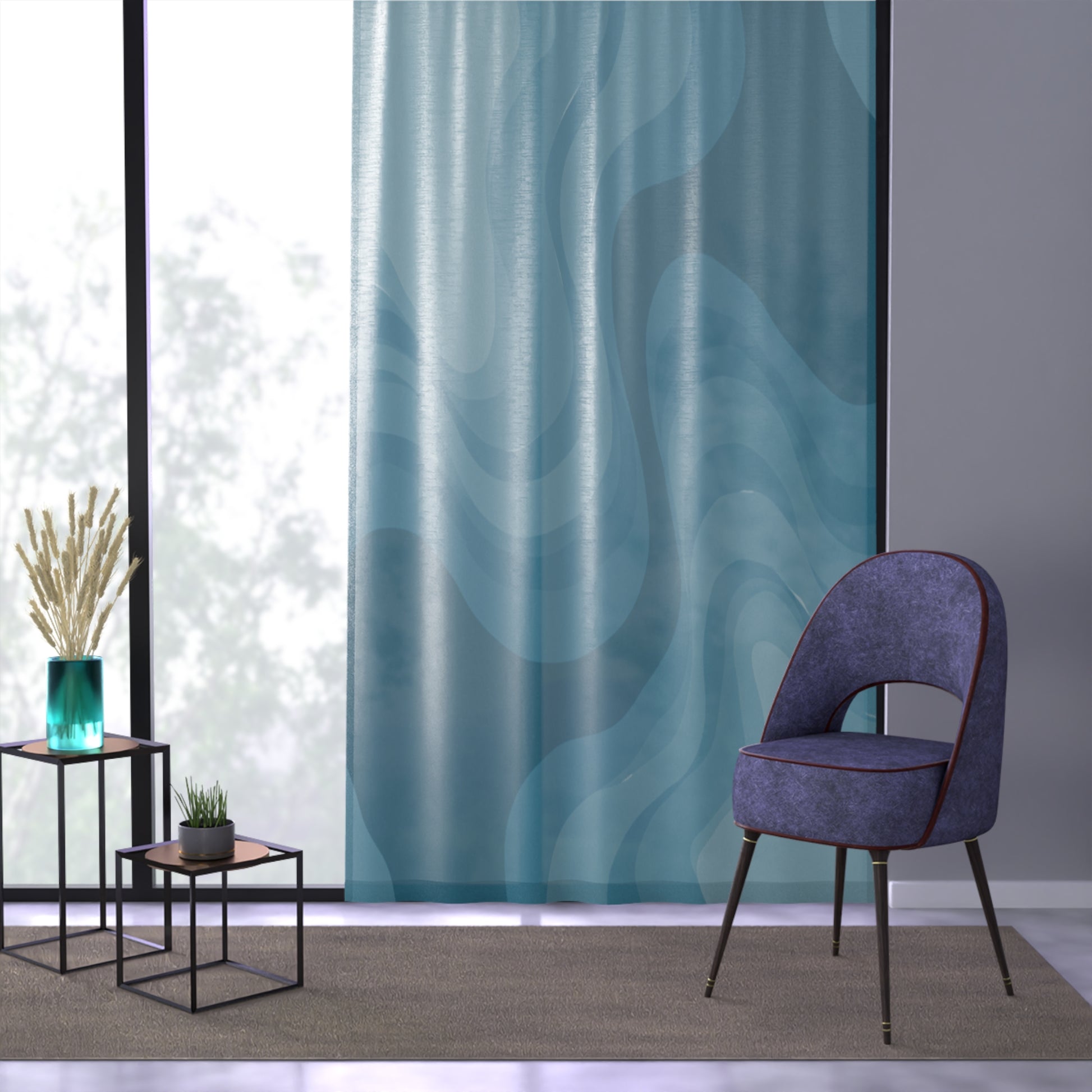 Sky Blue Wavey Sheer Window Curtain, 50" x 84", partially transparent