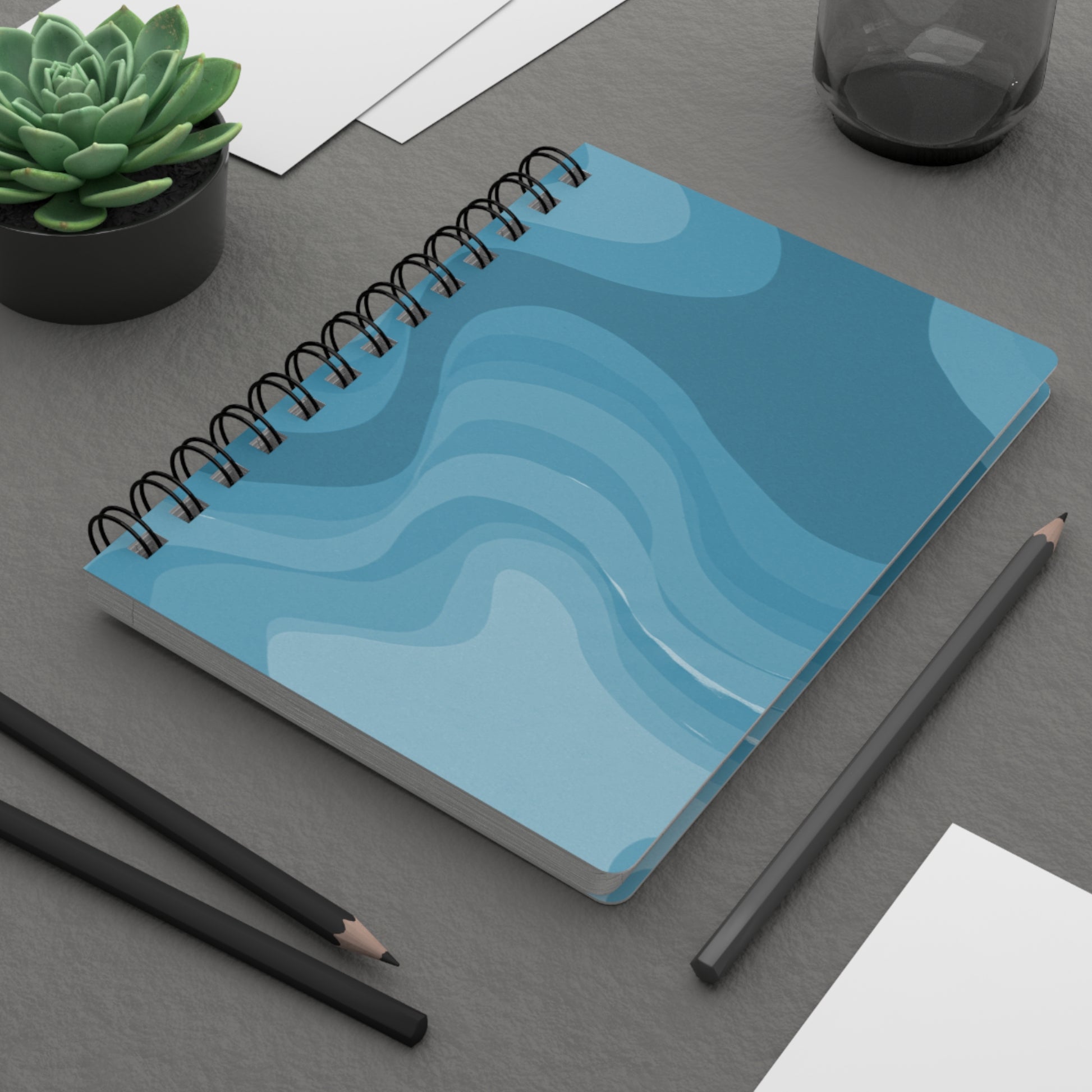 Sky Blue Wavey Spiral Bound Journal, 5" x 7" 150 pages
