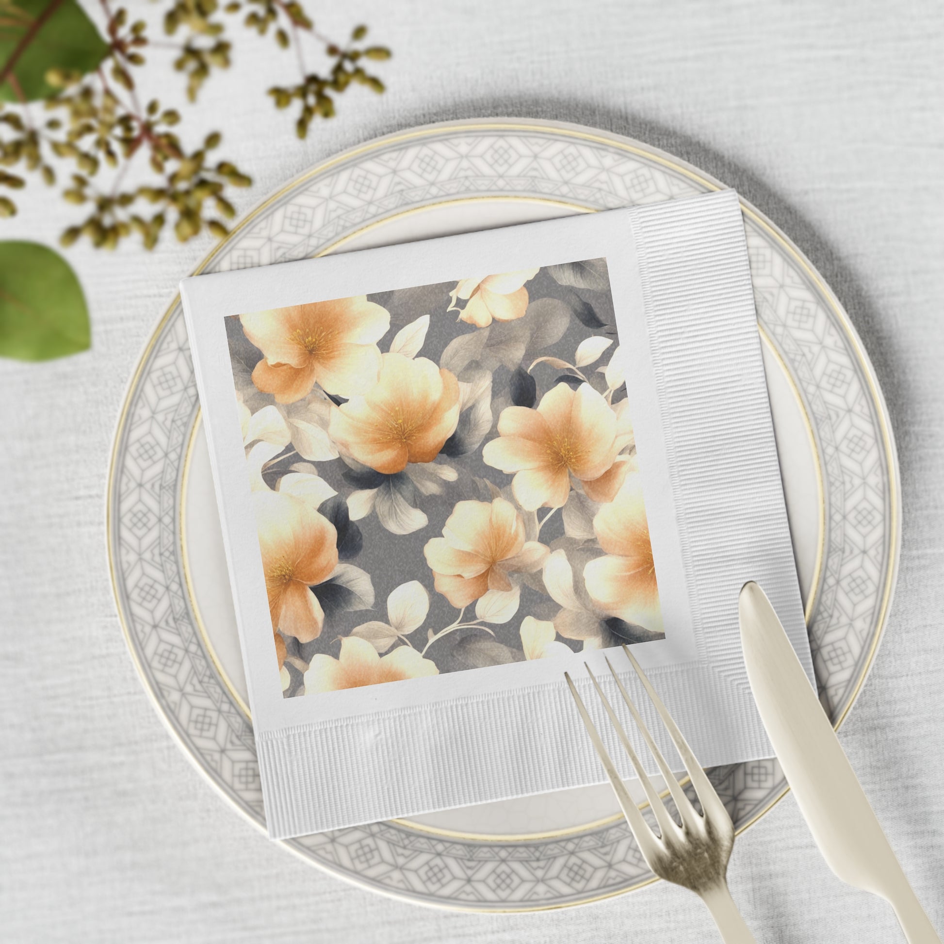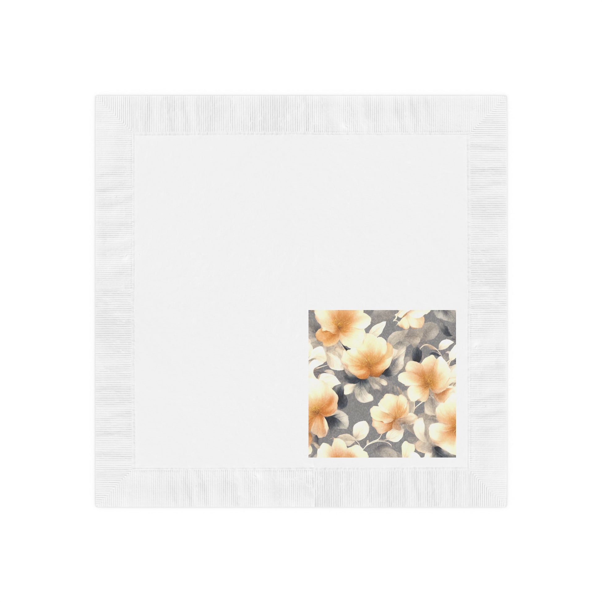Soft Blossom Floral Bunch White Coined Napkins, 6.5" x 6.5"