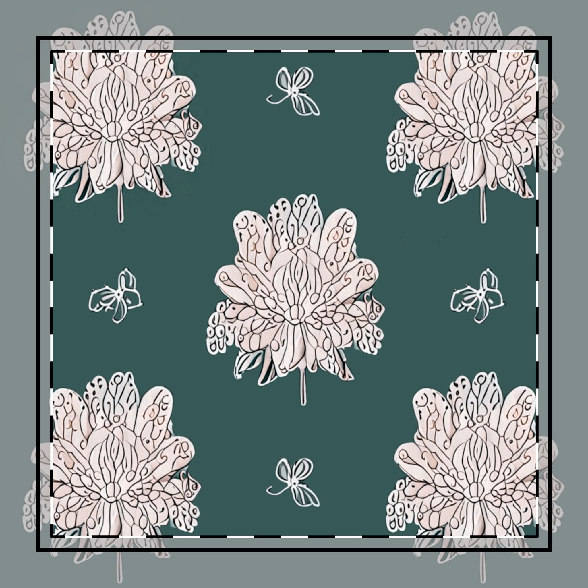 Soft White Floral Butterflies 10" x 10" Cotton Twill Napkin