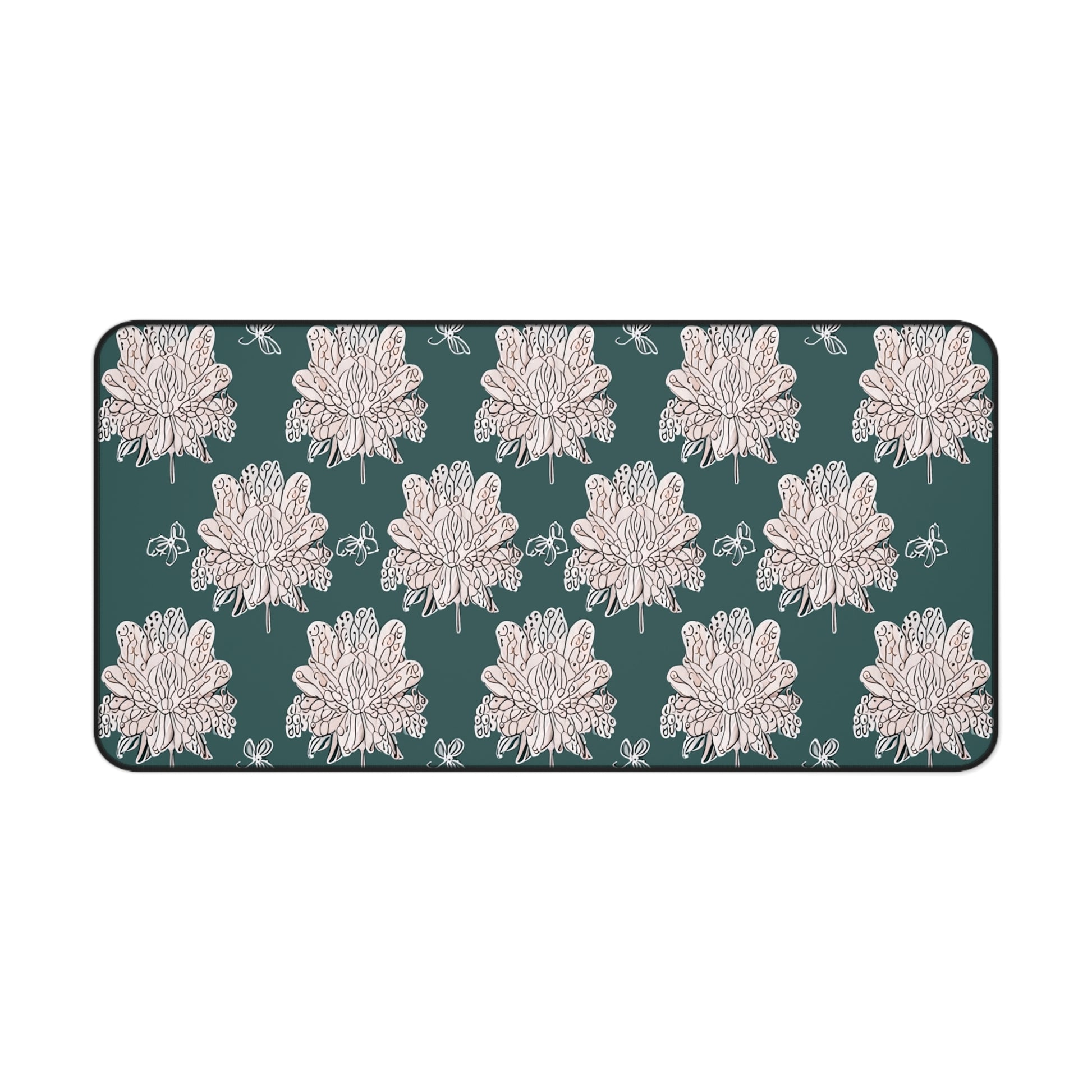 Soft White Floral Butterflies 16" x 32" Desk Mat