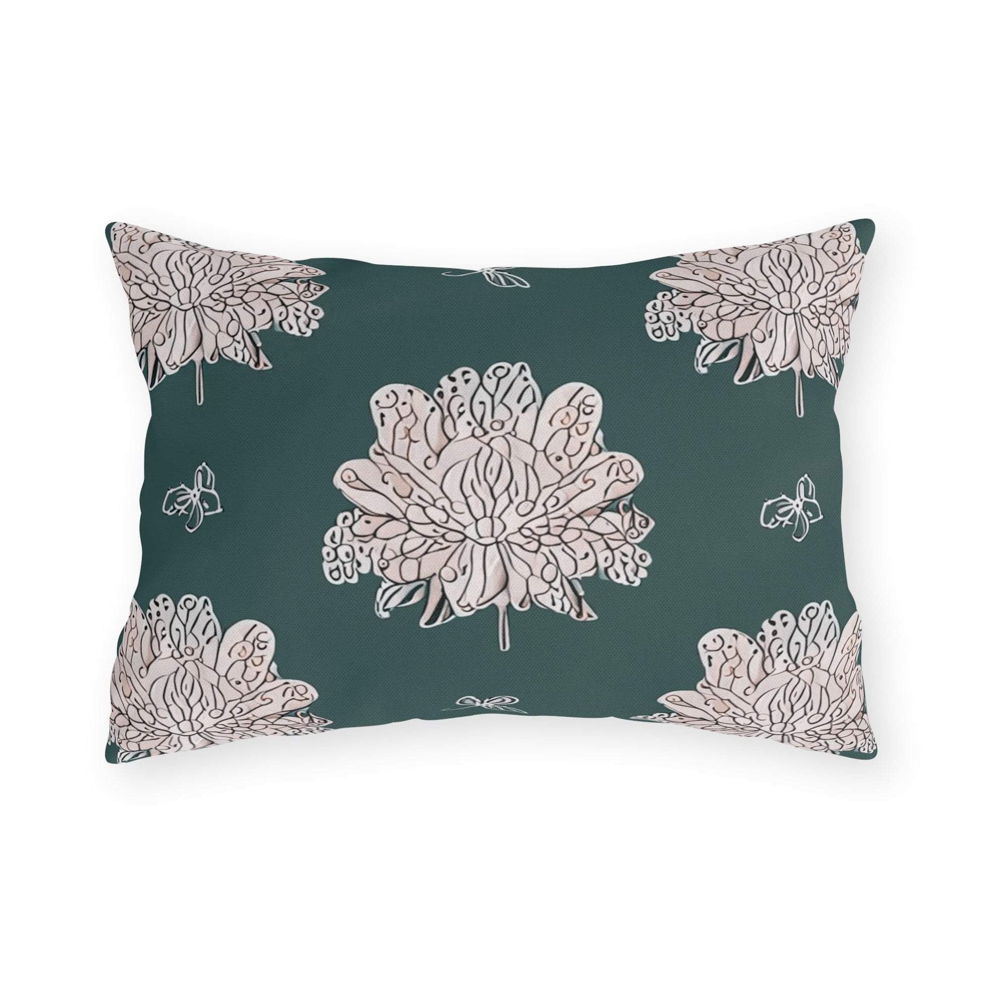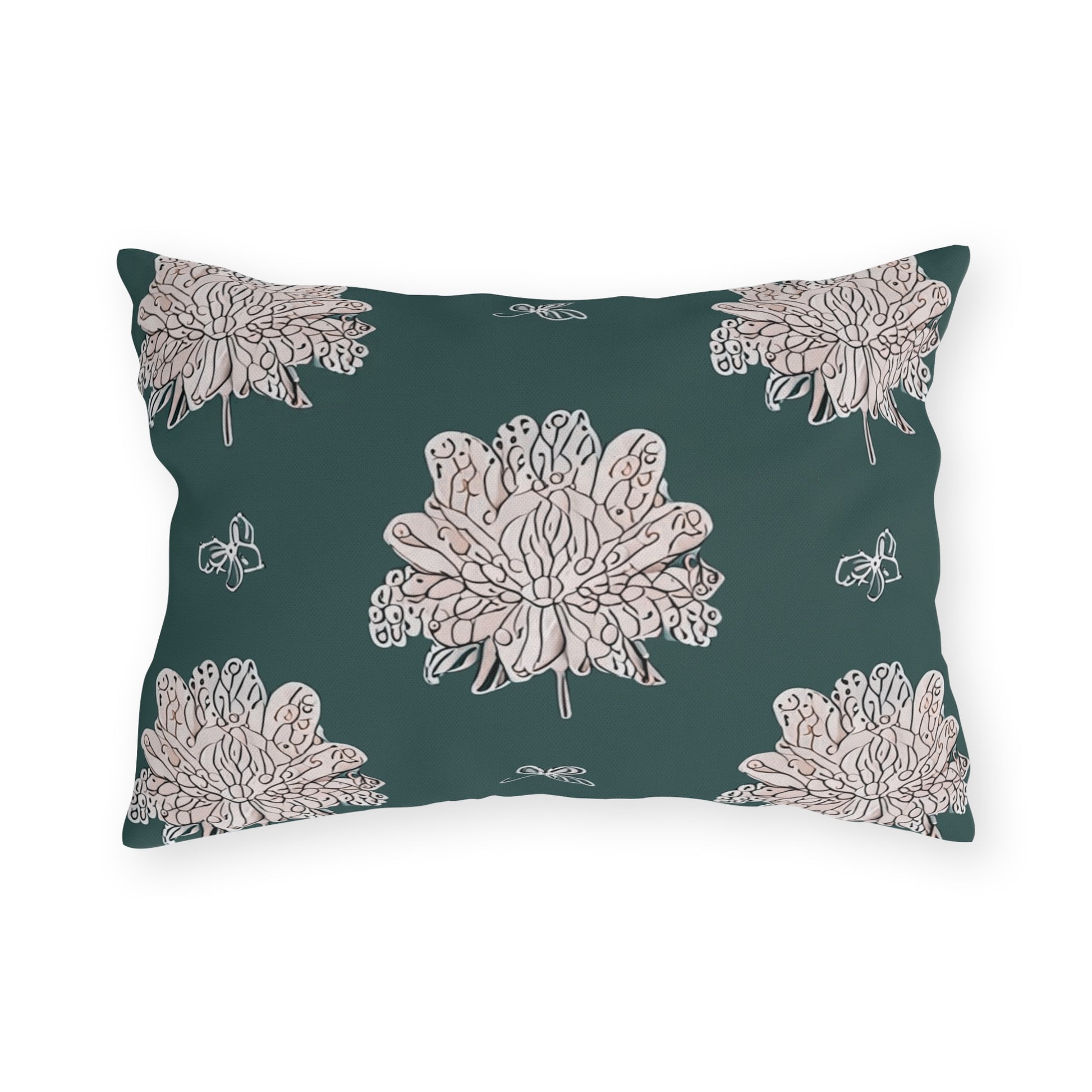 Soft White Floral Butterflies 20" x 14" Outdoor Pillow