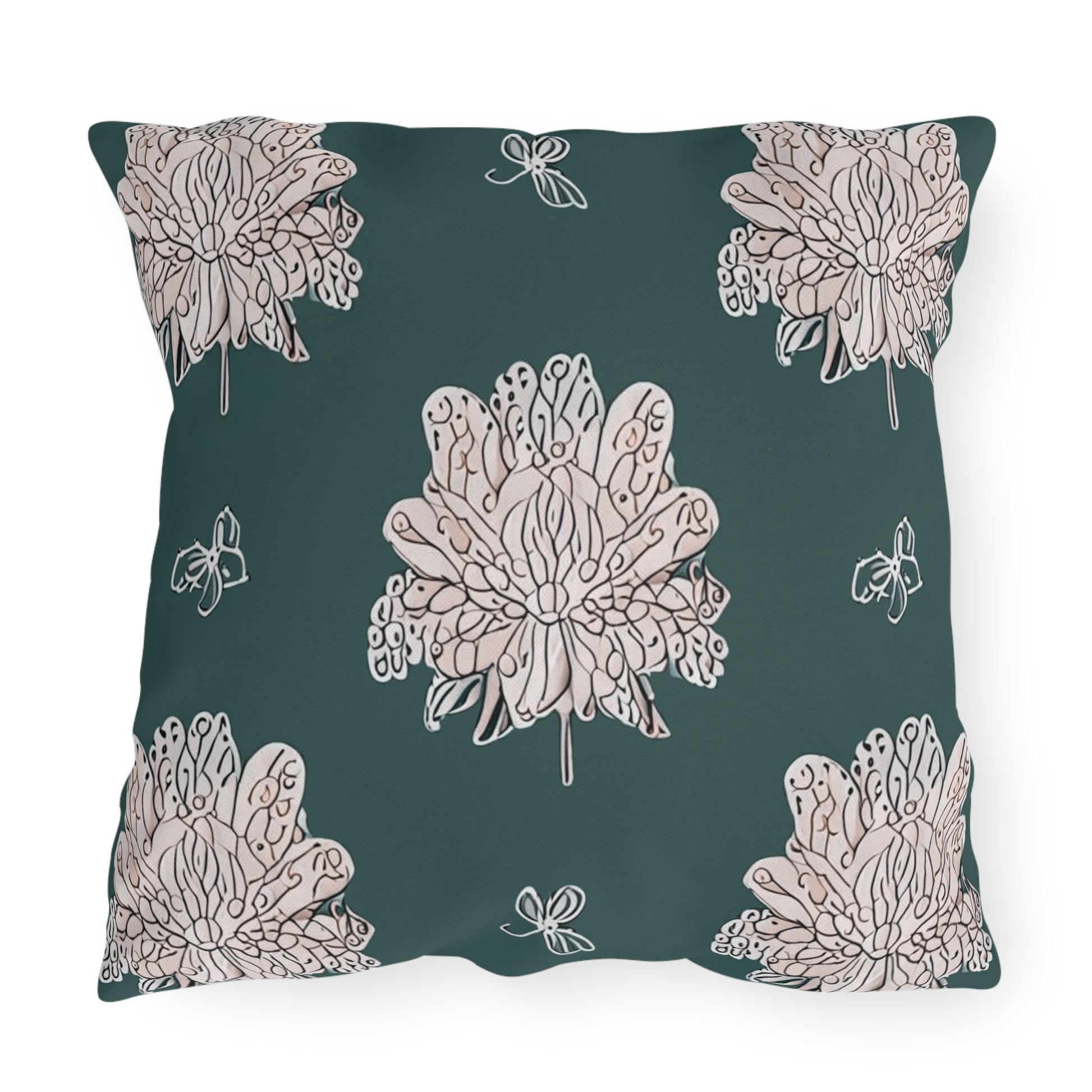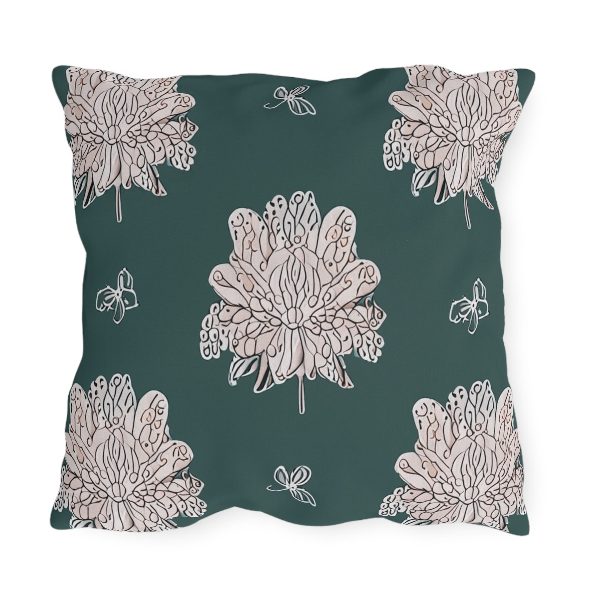 Soft White Floral Butterflies 20" x 20" Outdoor Pillow
