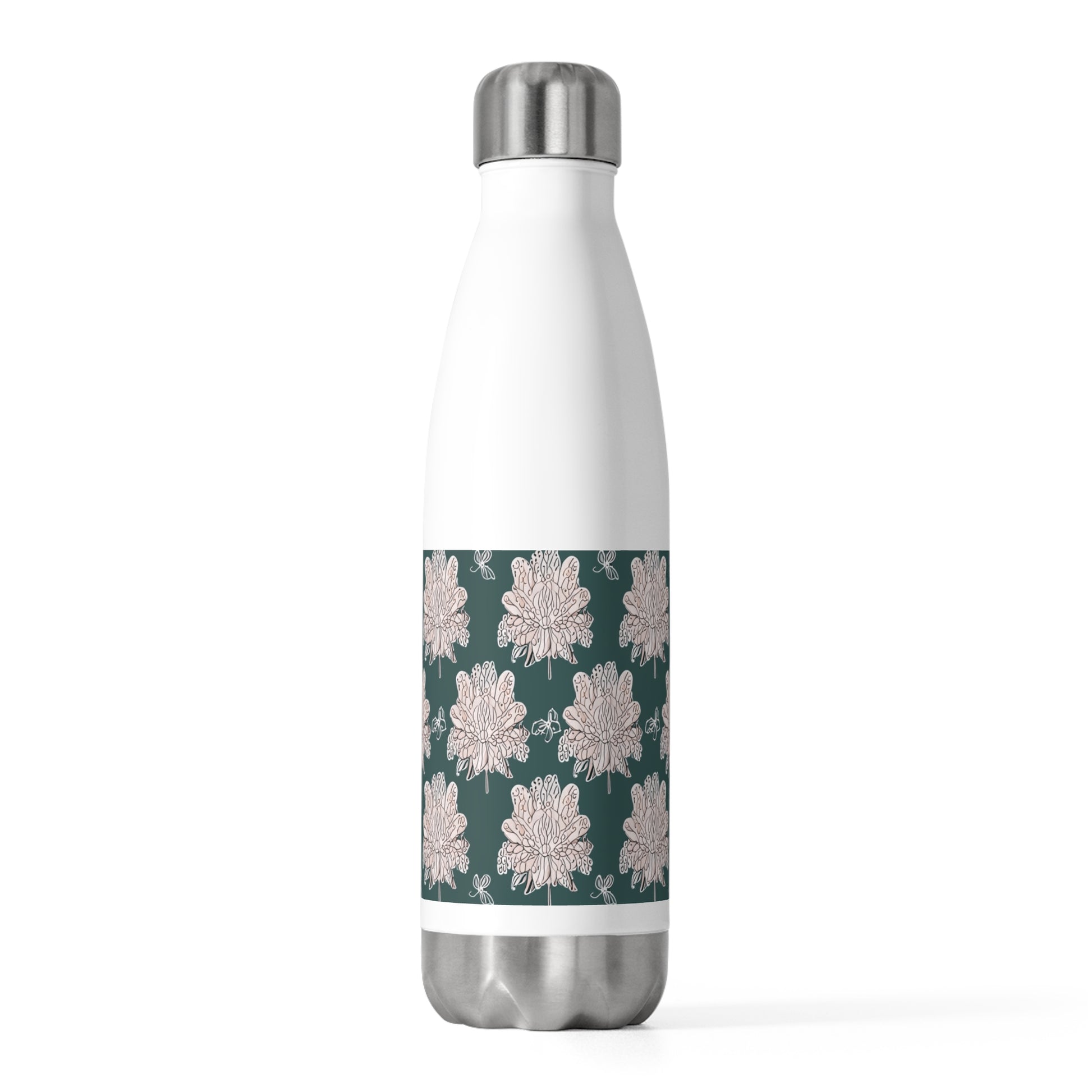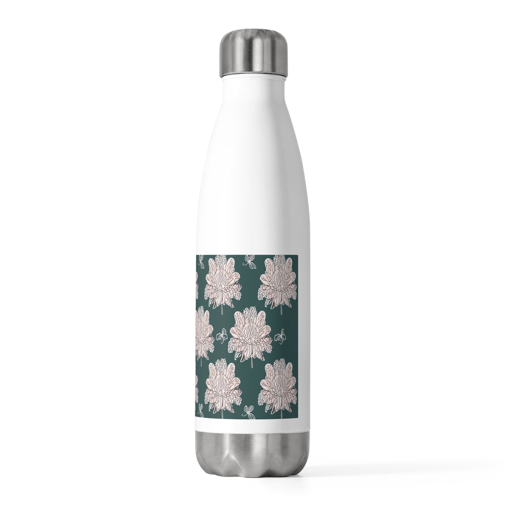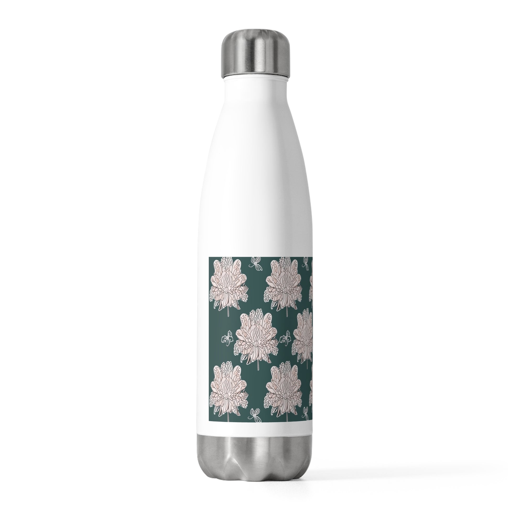 Soft White Floral Butterflies 20oz Insulated Water Bottle