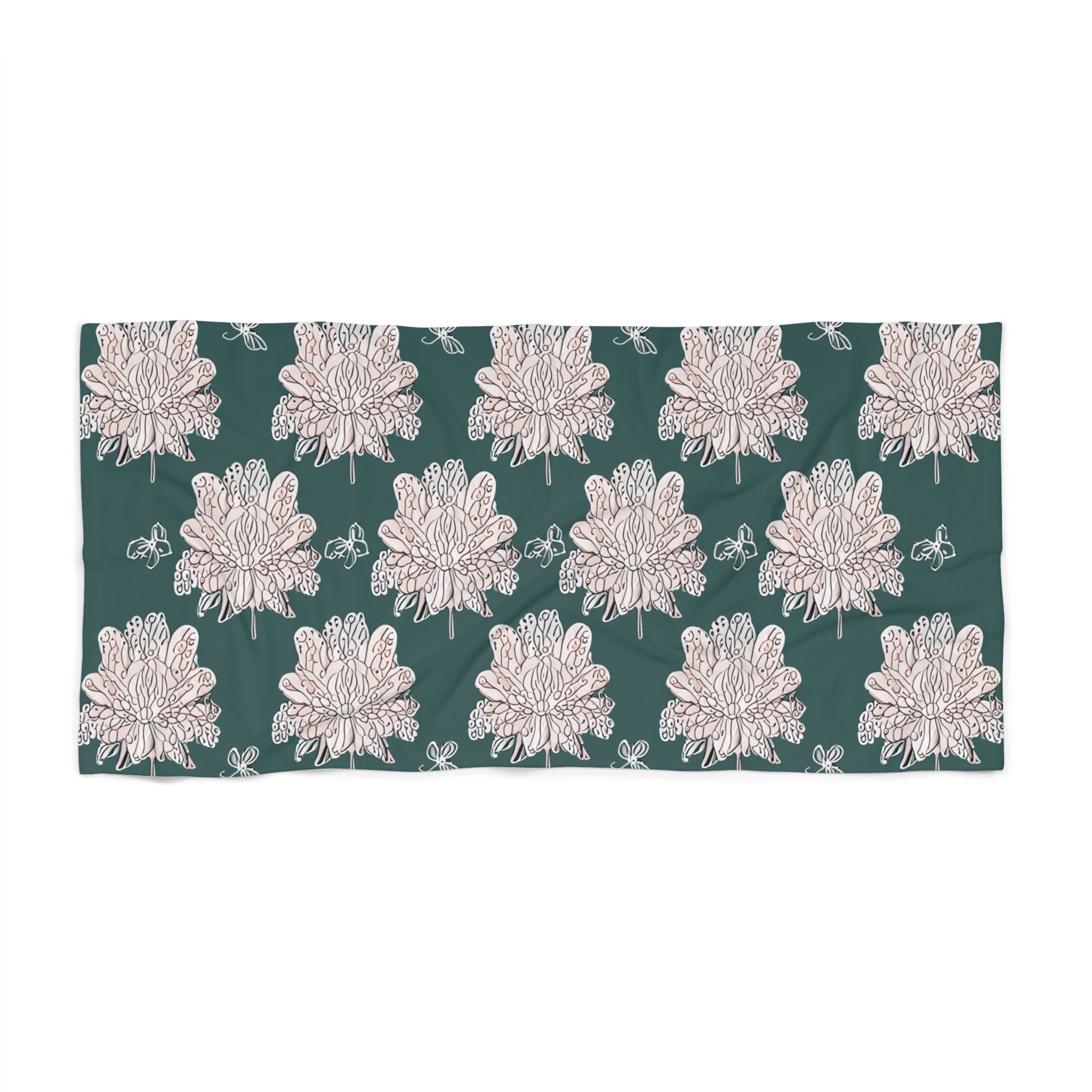 Soft White Floral Butterflies 30" x 60" Beach Towel