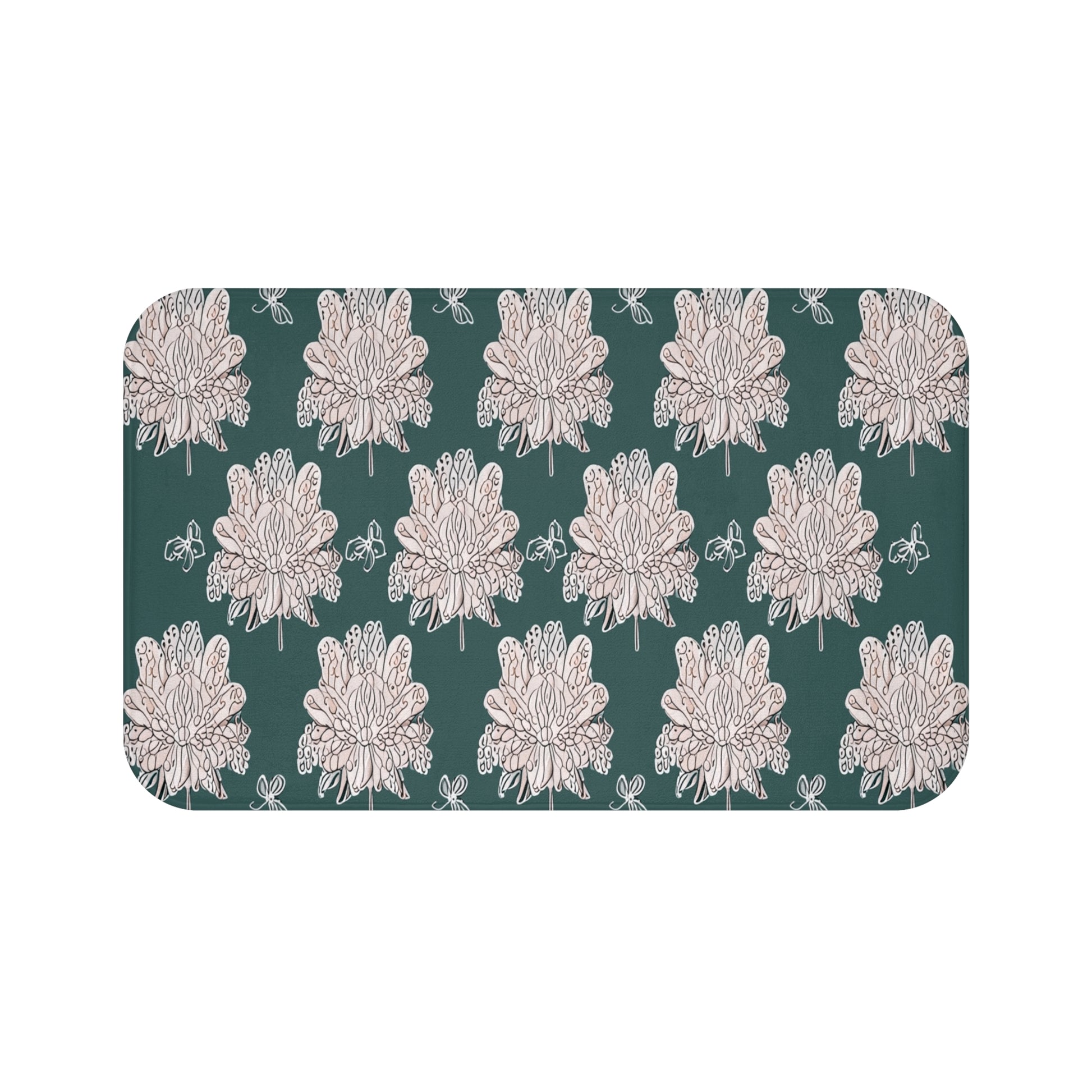 Soft White Floral Butterflies 34" x 21" Bath Mat