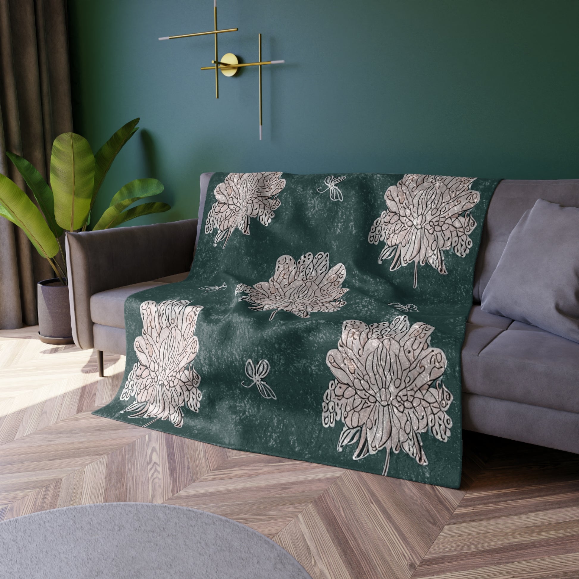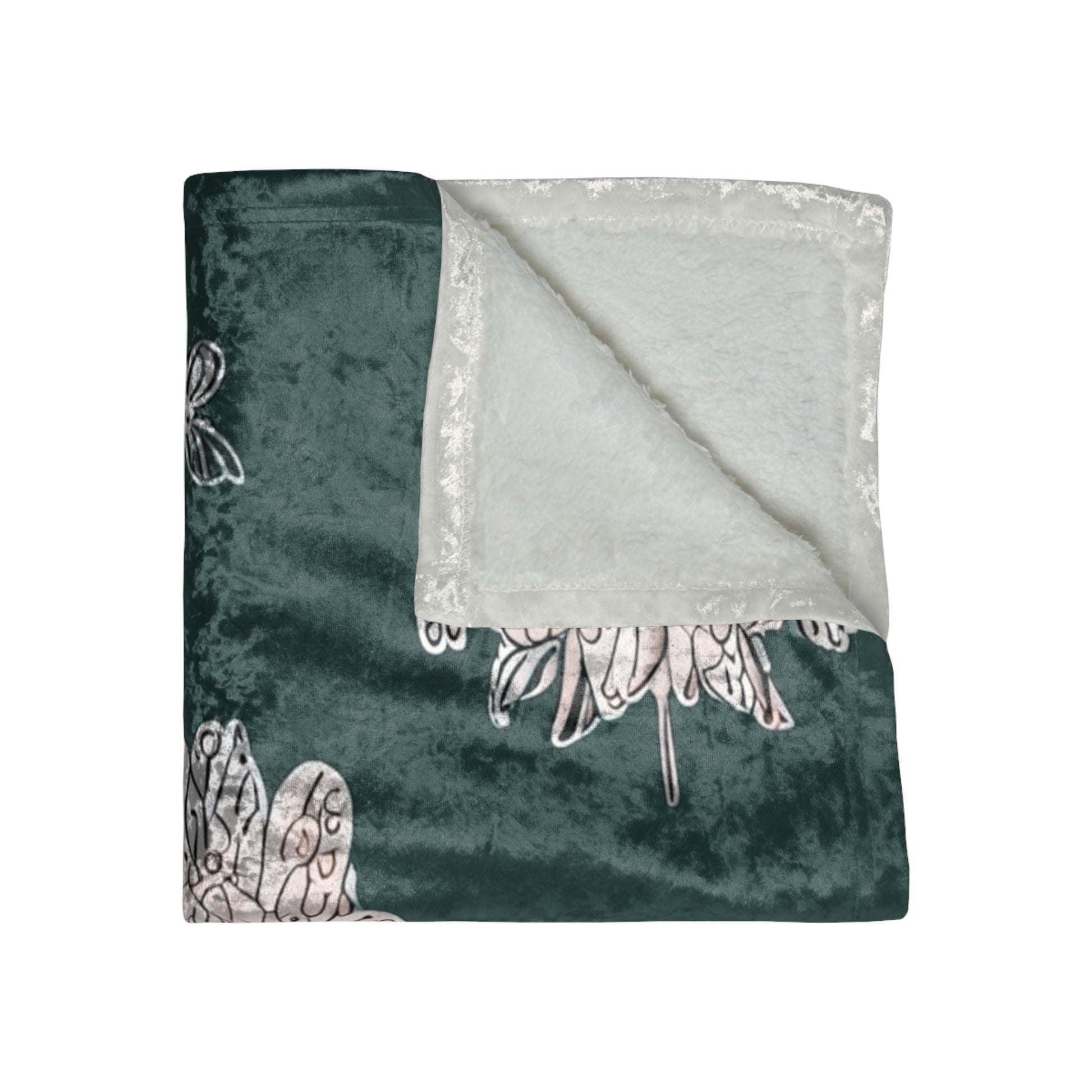 Soft White Floral Butterflies 50" x 60" Crushed Velvet Blanket