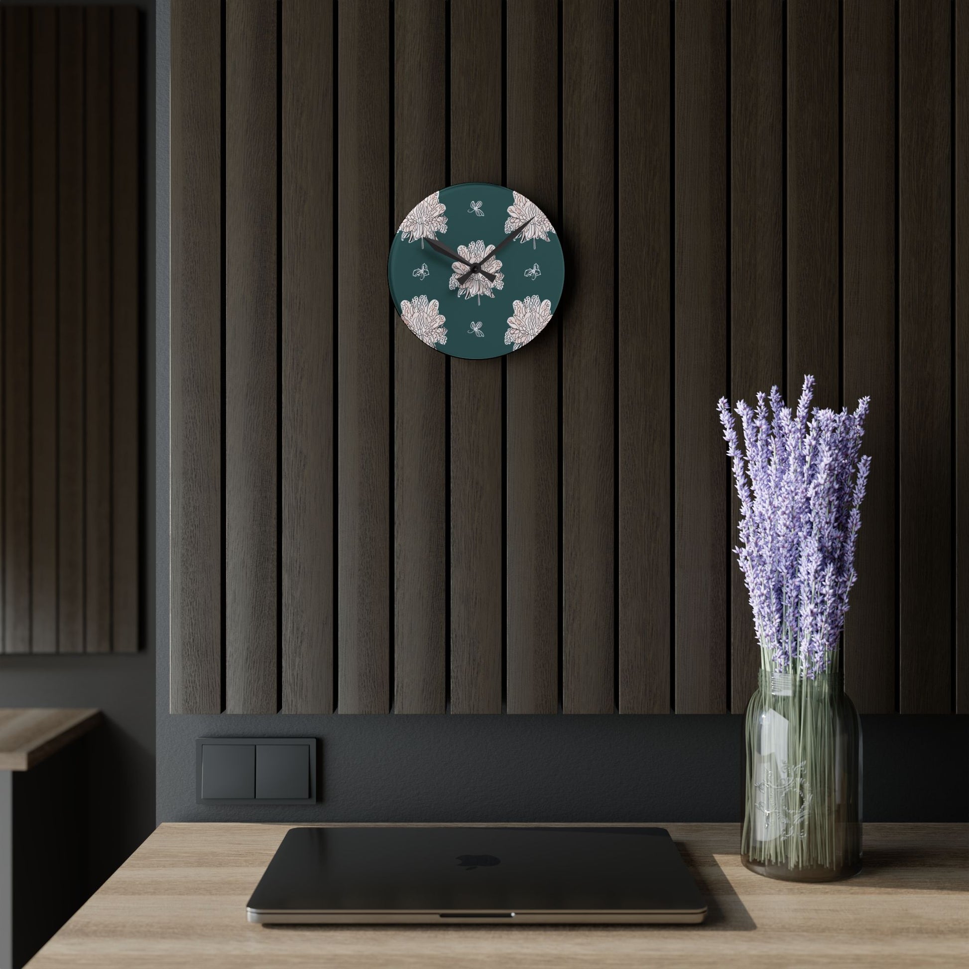 Soft White Floral Butterflies Acrylic Round Wall Clock, 8" x 8"