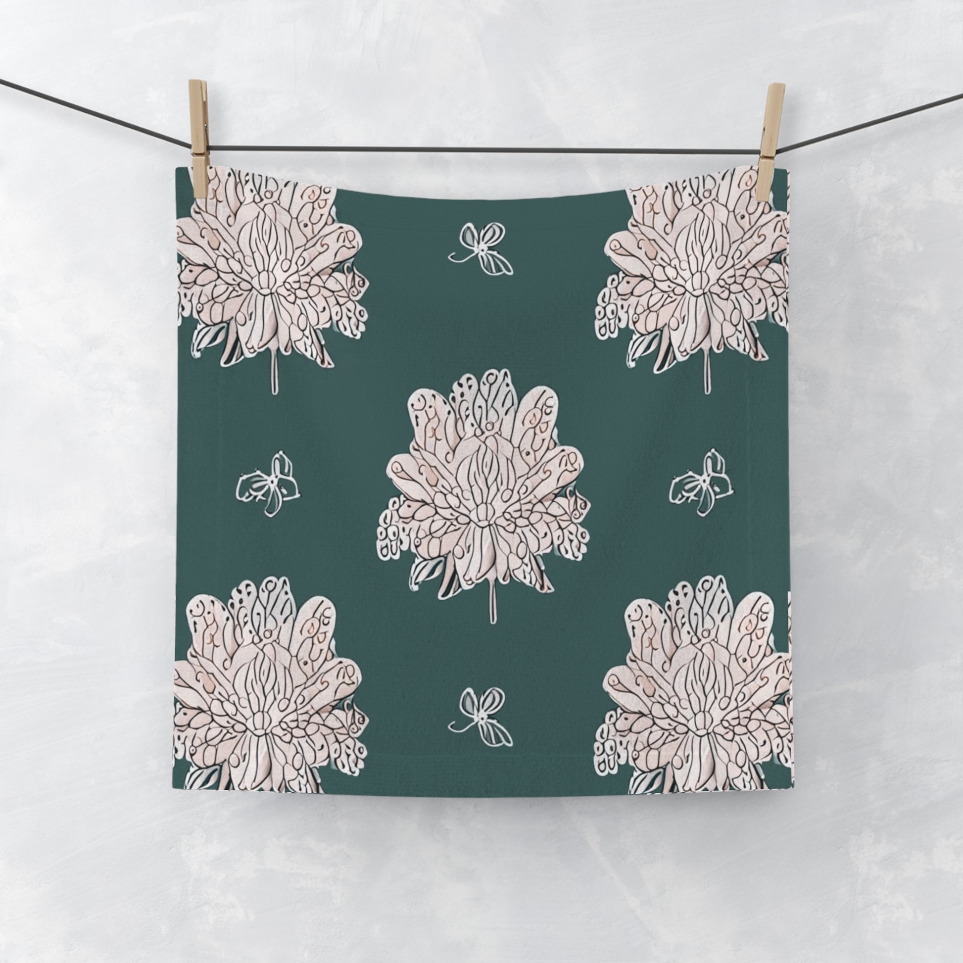 Soft White Floral Butterflies Face Towel, 13" x 13"