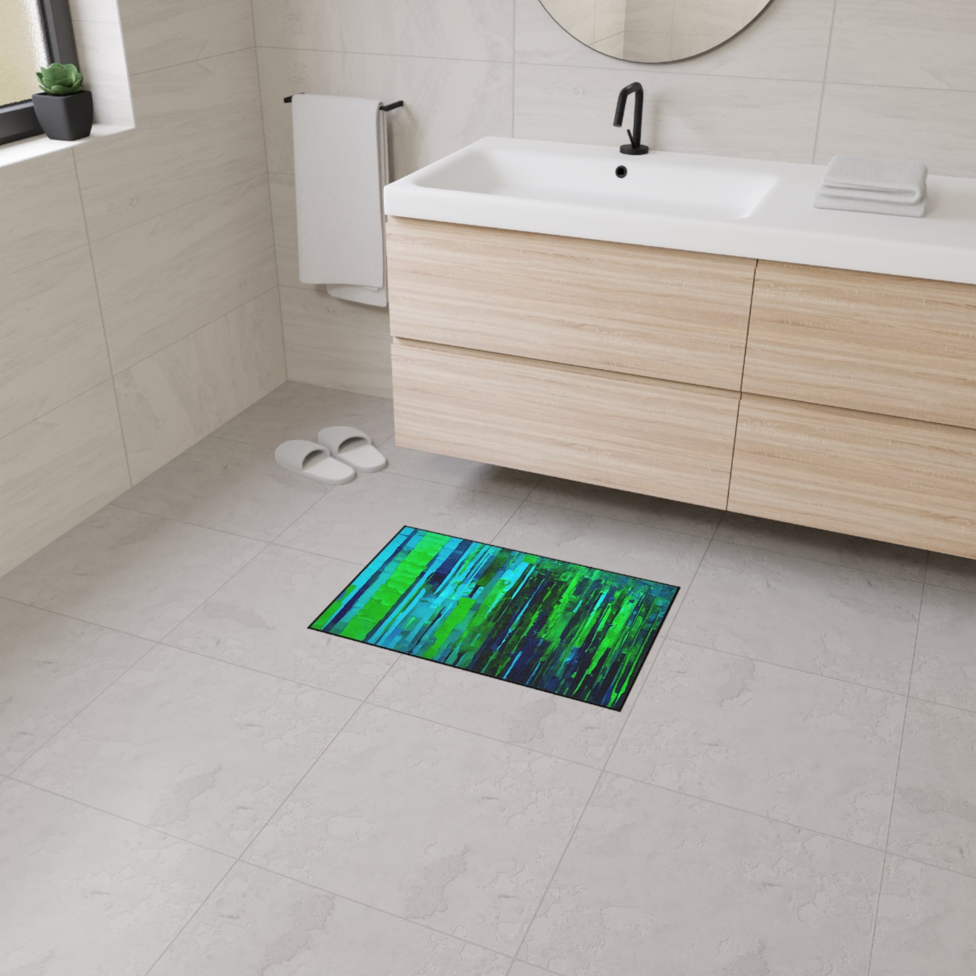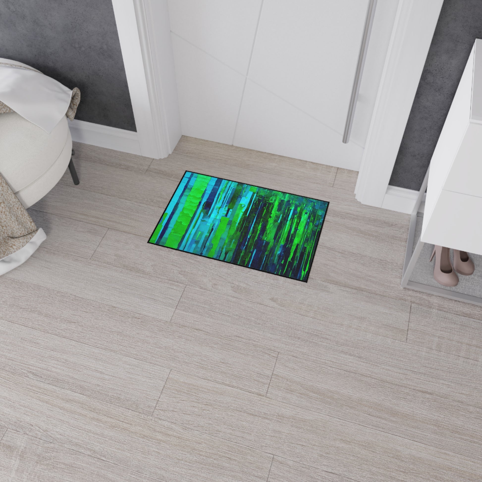 Striped Blue Green 18" x 27" Heavy Duty Floor Mat
