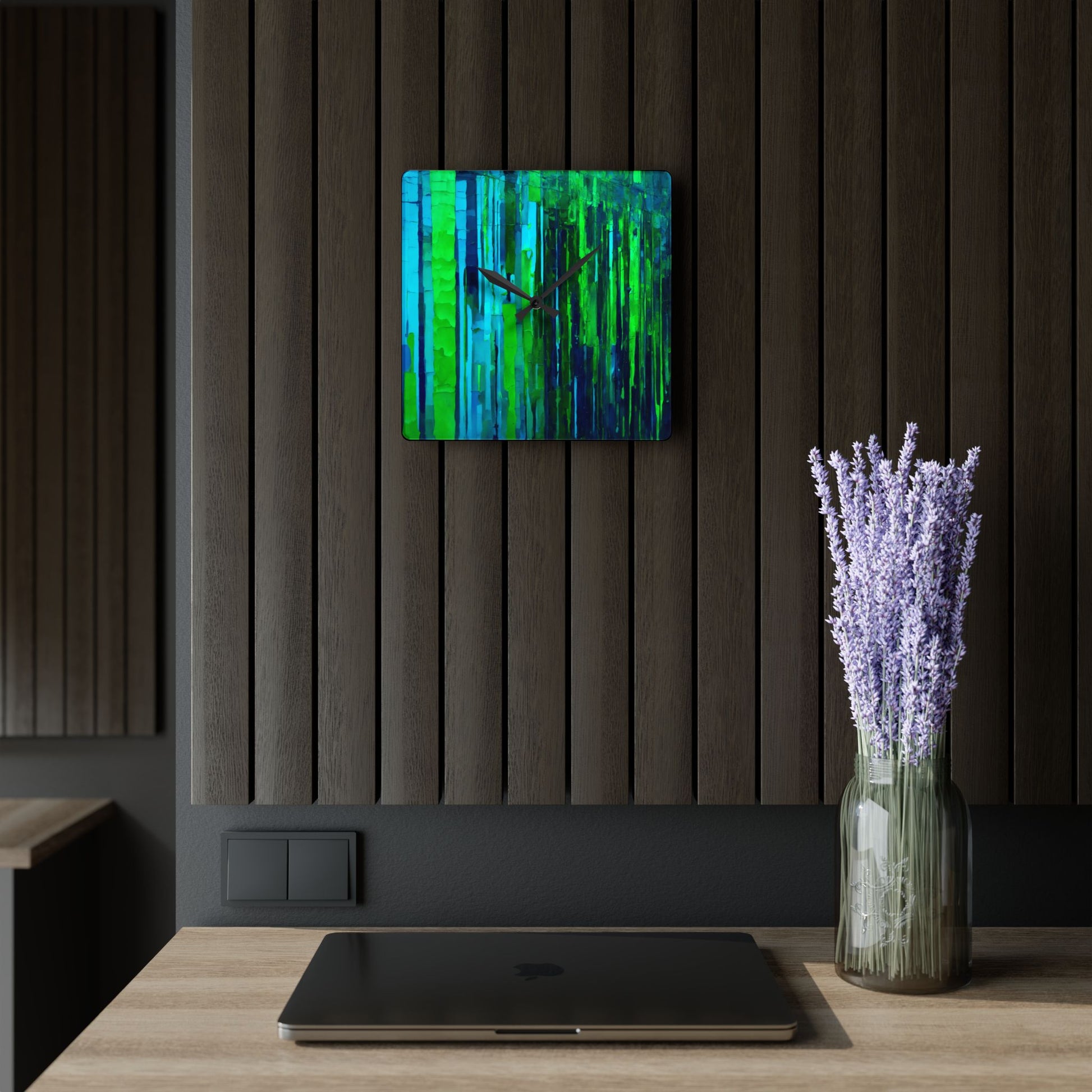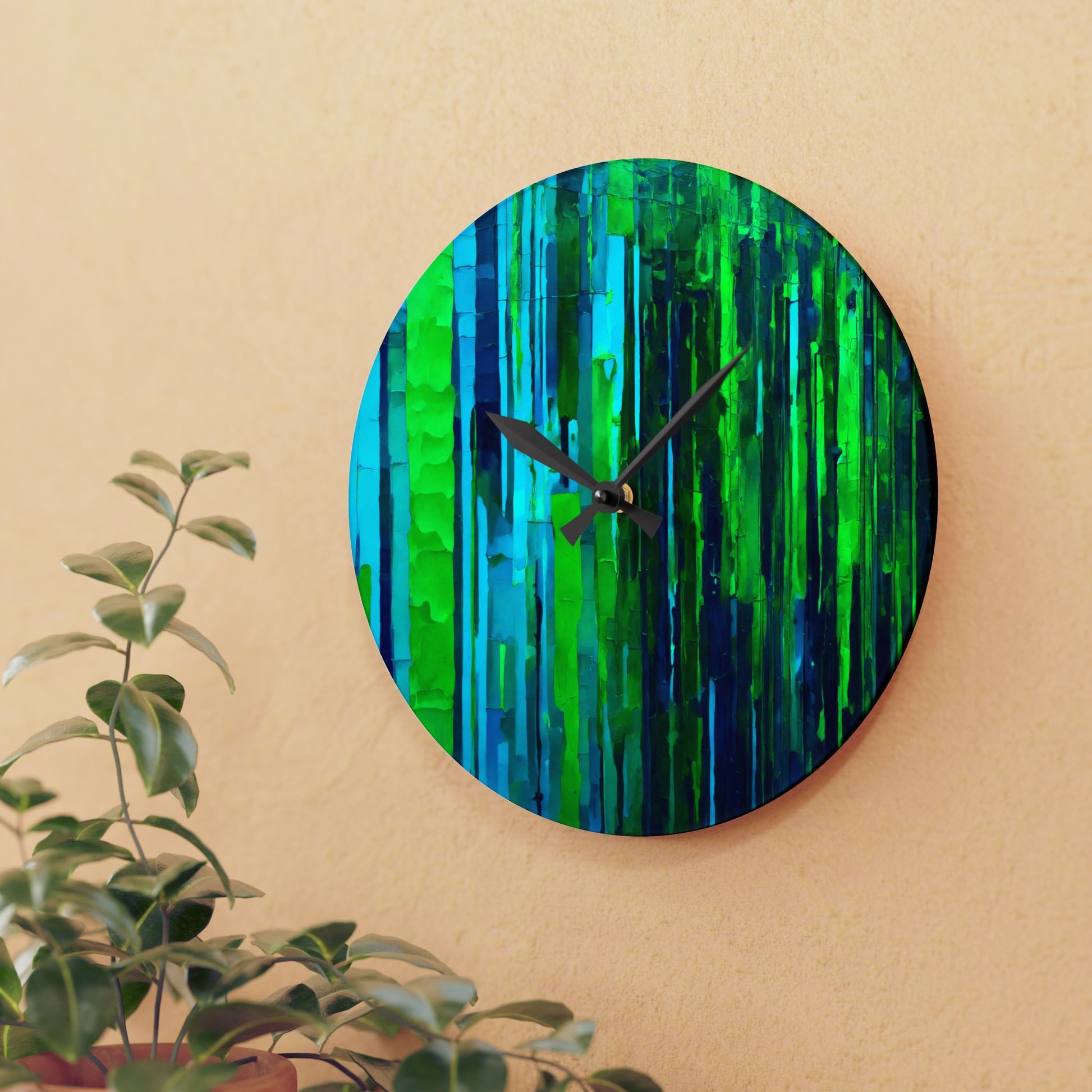 Striped Blue Green Acrylic Wall Clock, Round or Square, 10.75" x 10.75"