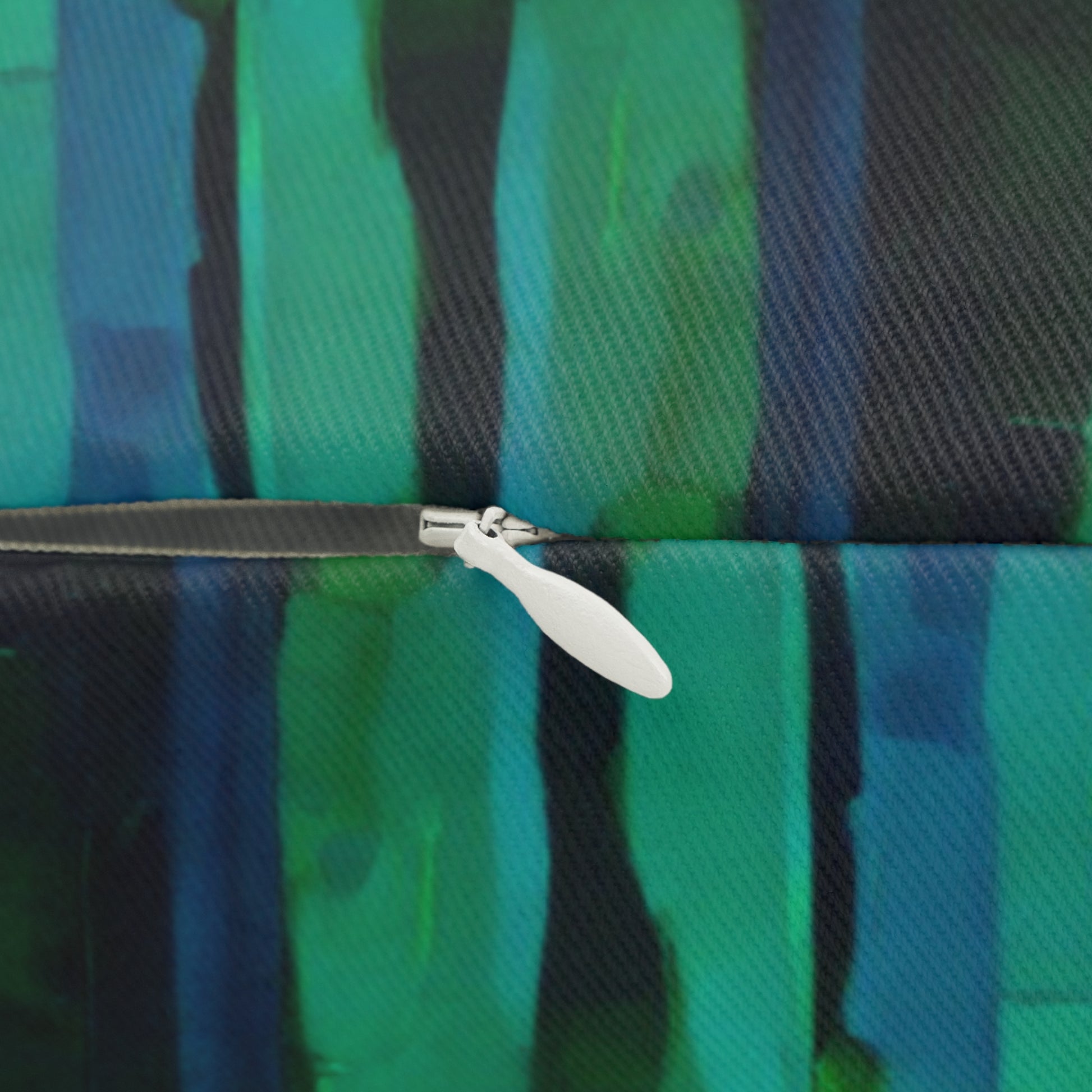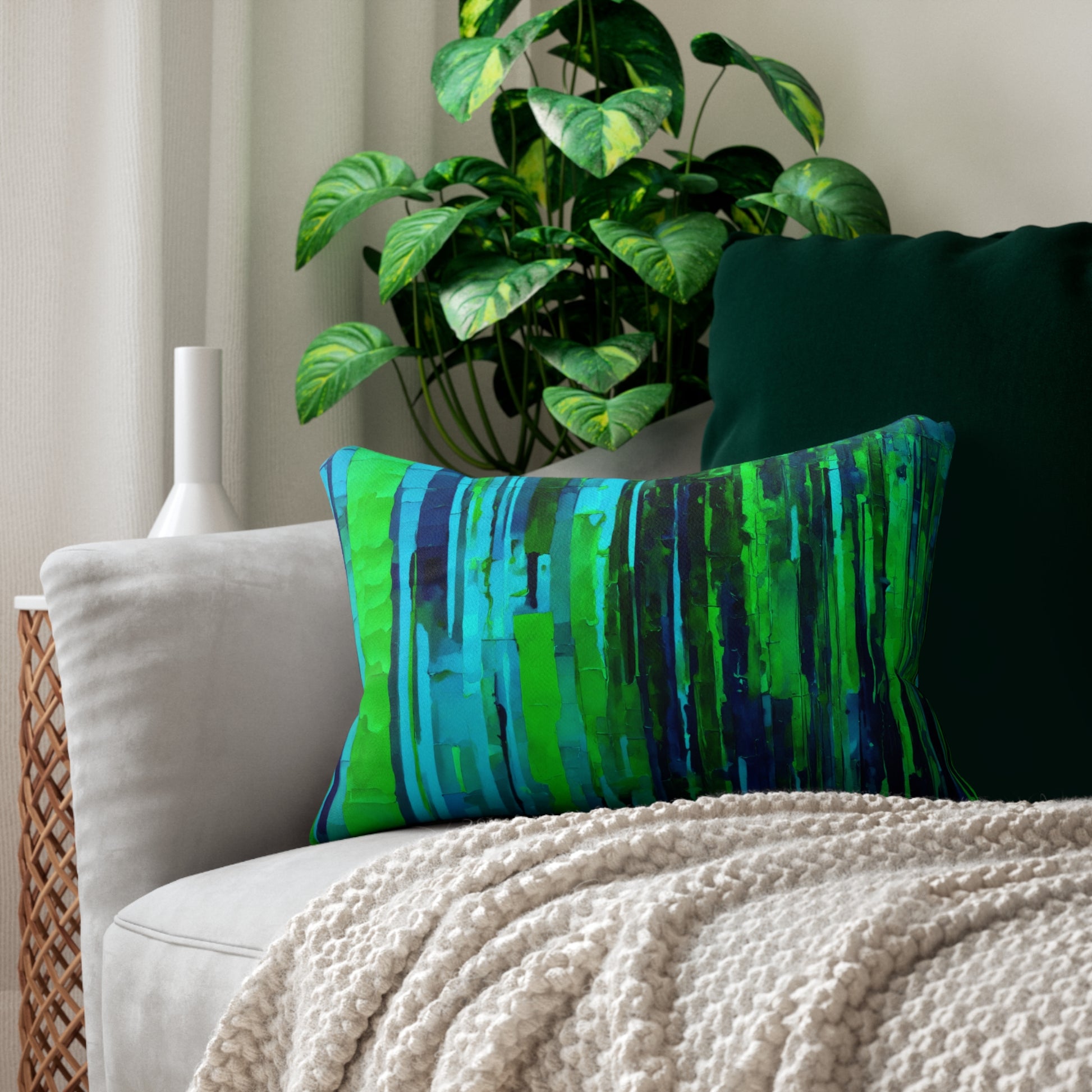 Striped Blue Green Spun Polyester Lumbar Pillow, 20" x 14"