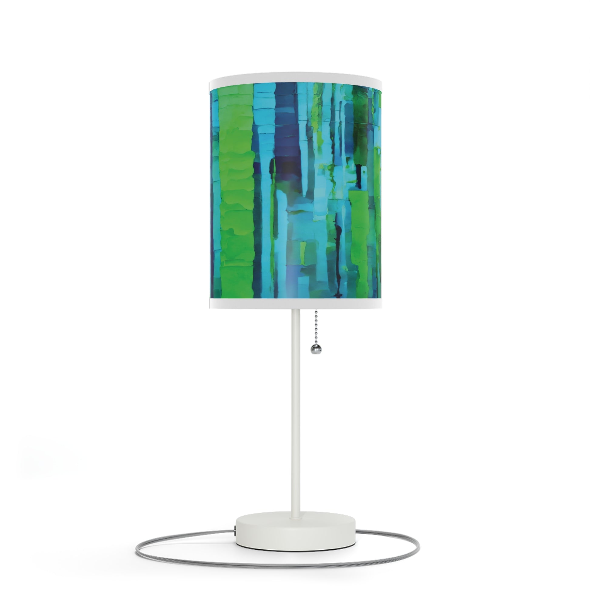 Striped Blue Green Table Lamp on a White or Silver Stand, US|CA plug