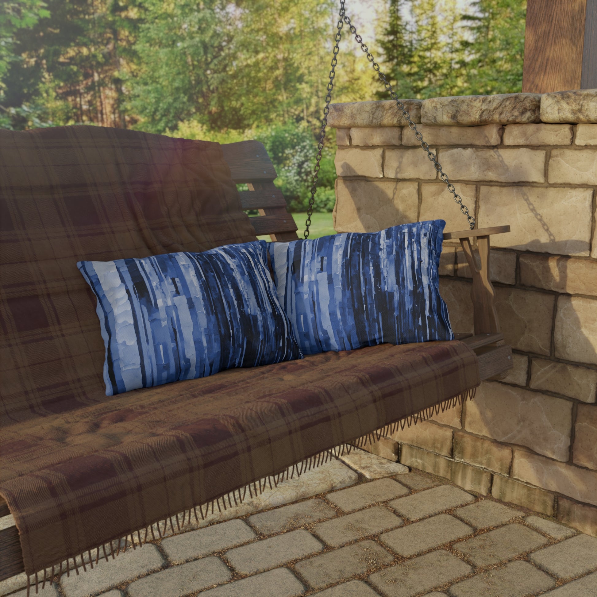 Striped Deep Blue 20" x 14" Outdoor Pillow