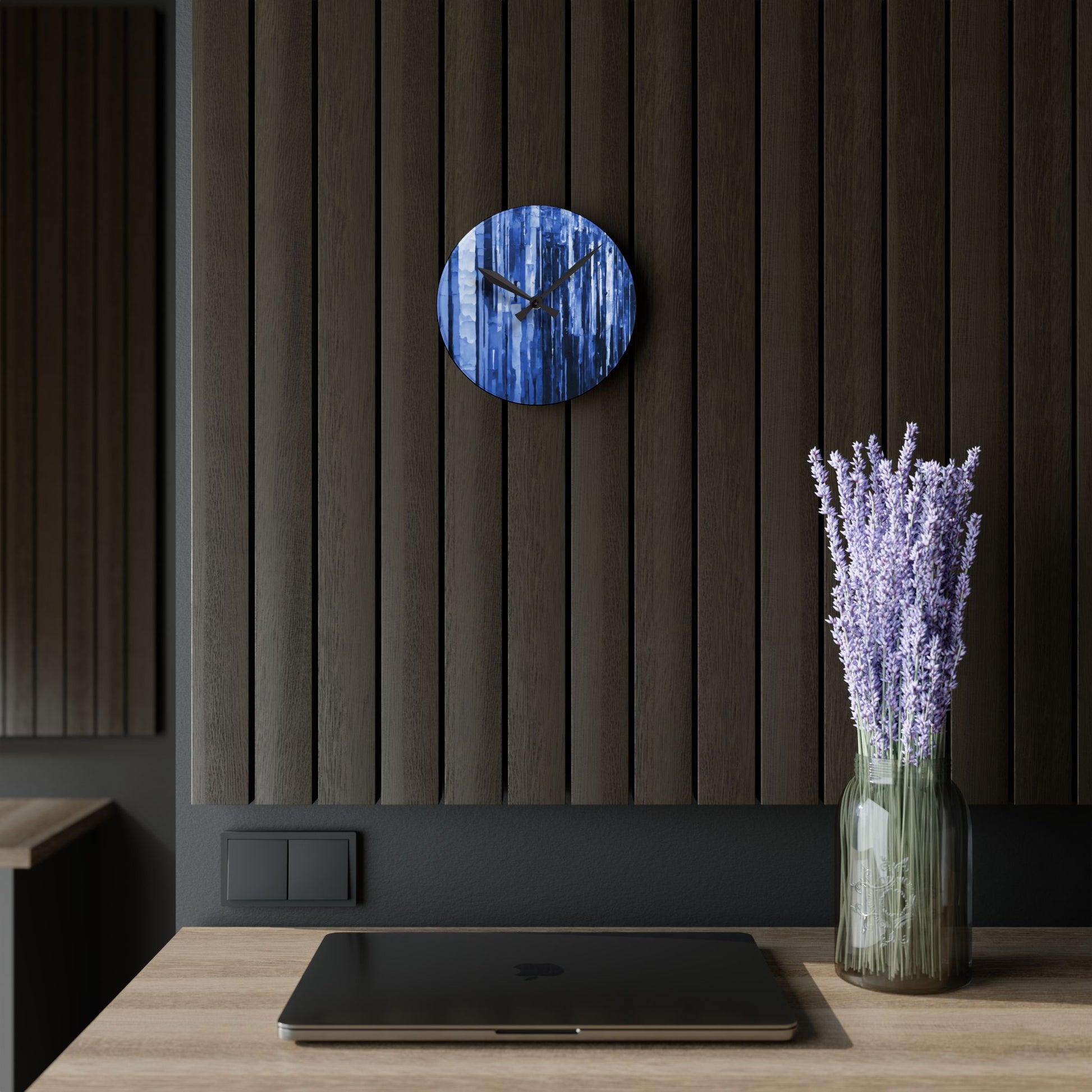 Striped Deep Blue Acrylic Round Wall Clock, 8" x 8"