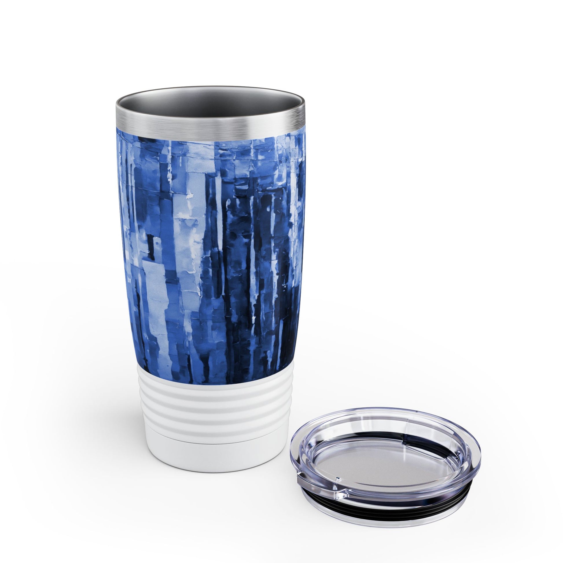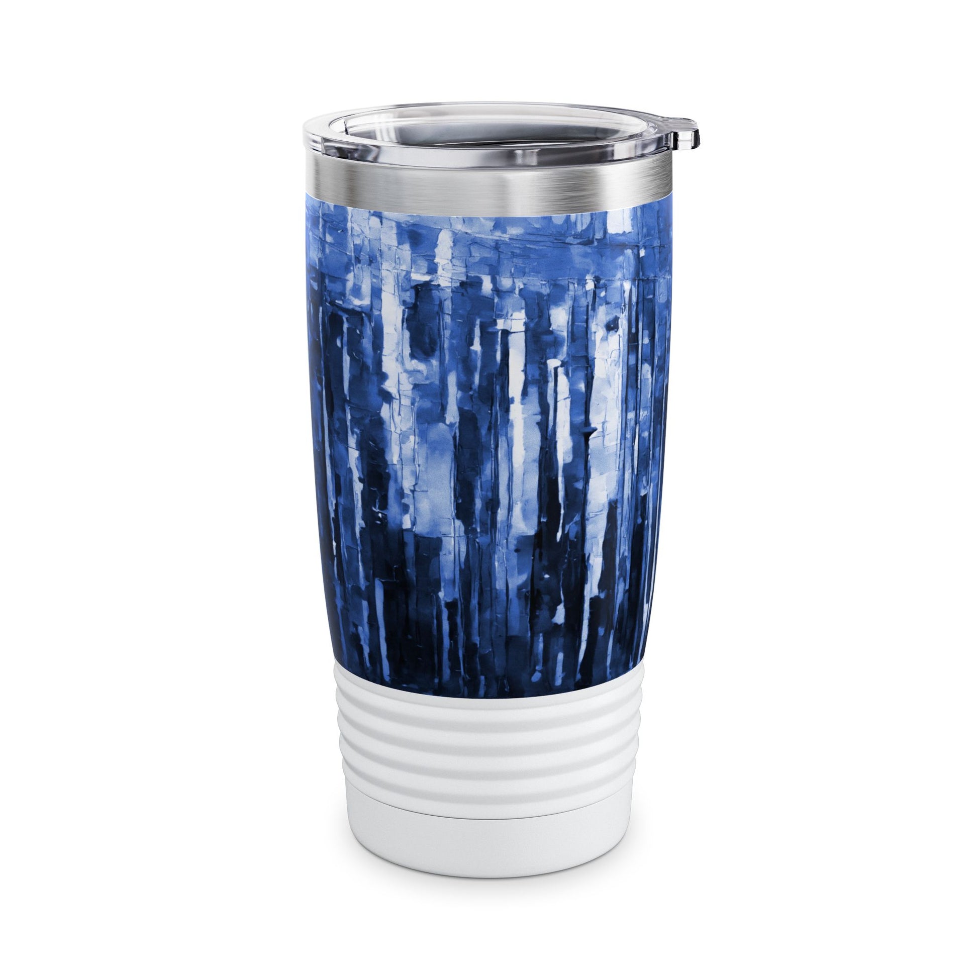 Striped Deep Blue Ringneck Tumbler, 20oz in white, steel and black