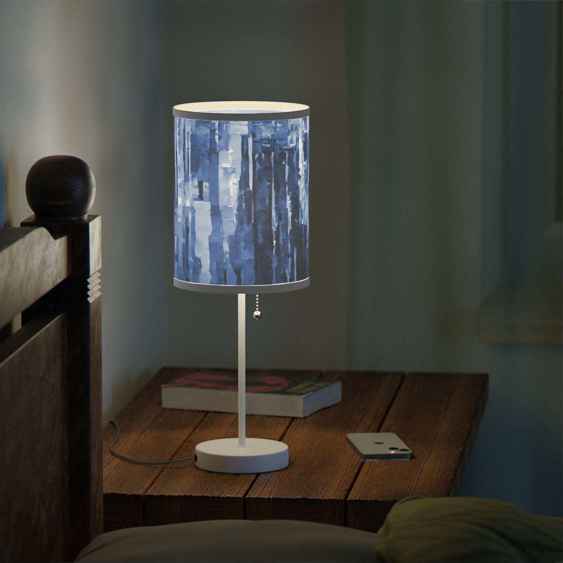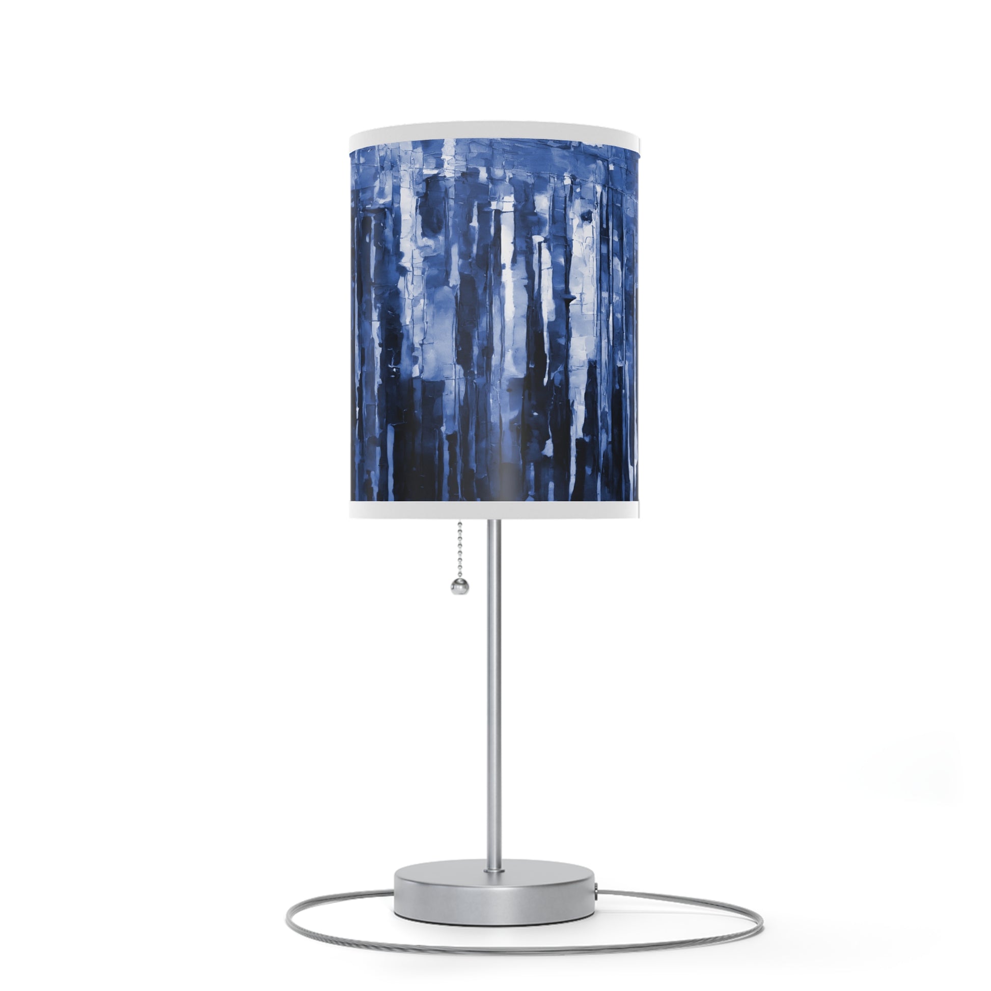 Striped Deep Blue Table Lamp on a White or Silver Stand, US|CA plug