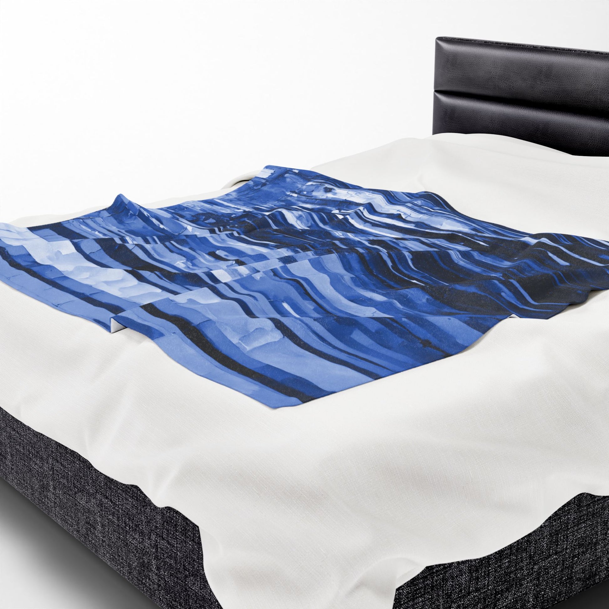 Striped Deep Blue Velveteen Plush Blanket, 50" x 60"