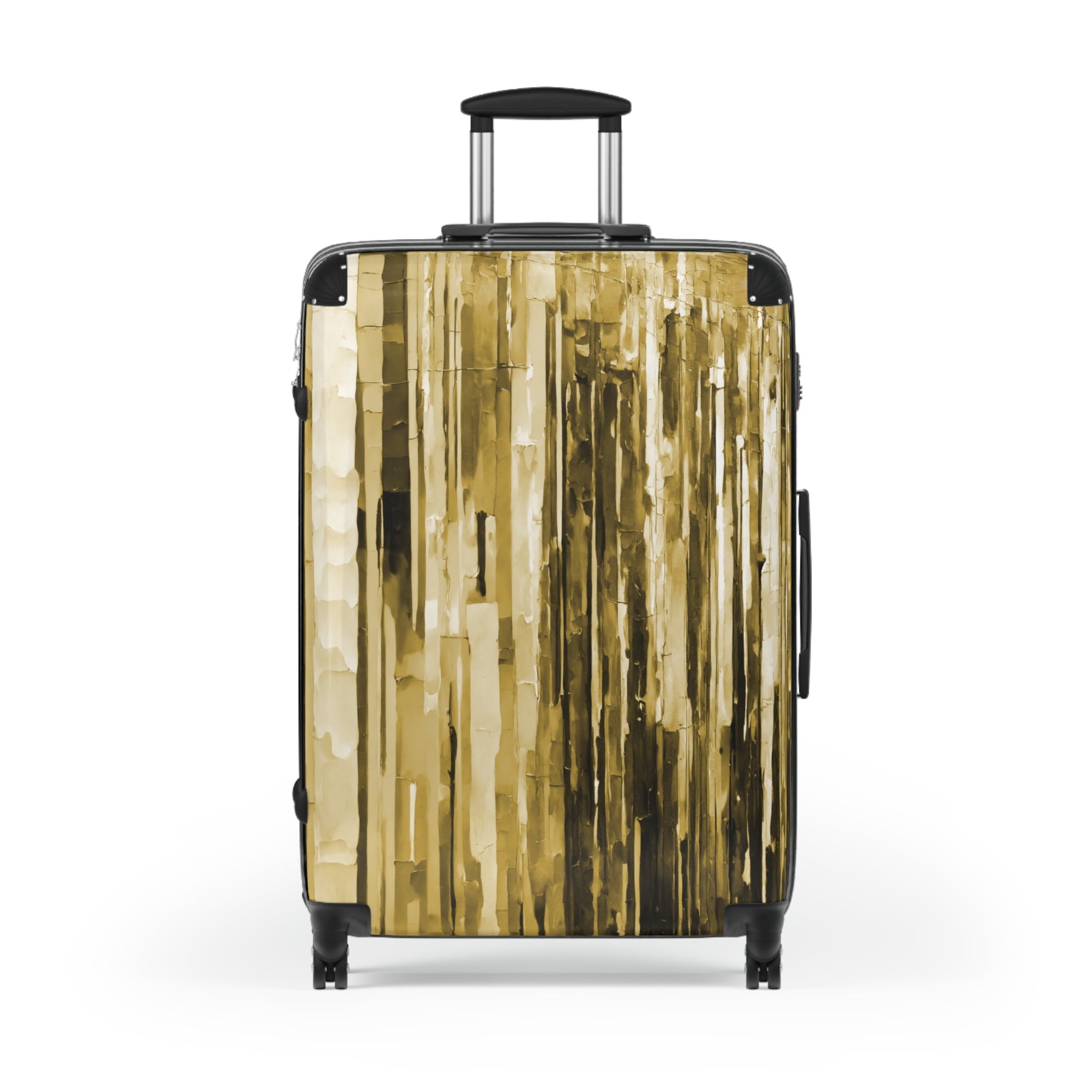 Striped Light Brown Large Suitcase with built in lock, 4 double-wheels, telescopic handle, and ABS back hard-shell