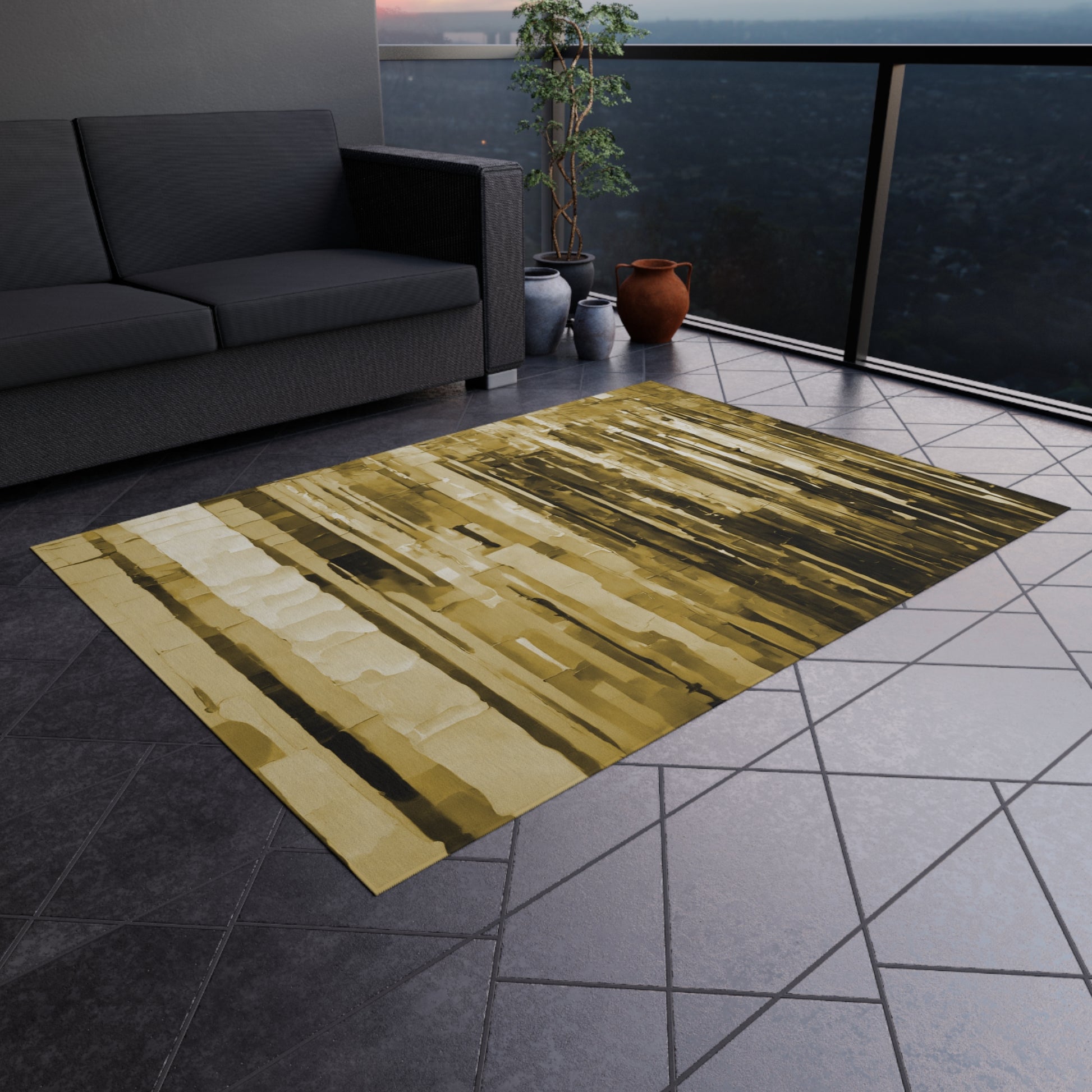 Striped Light Brown Outdoor Rug, 60" x 84"