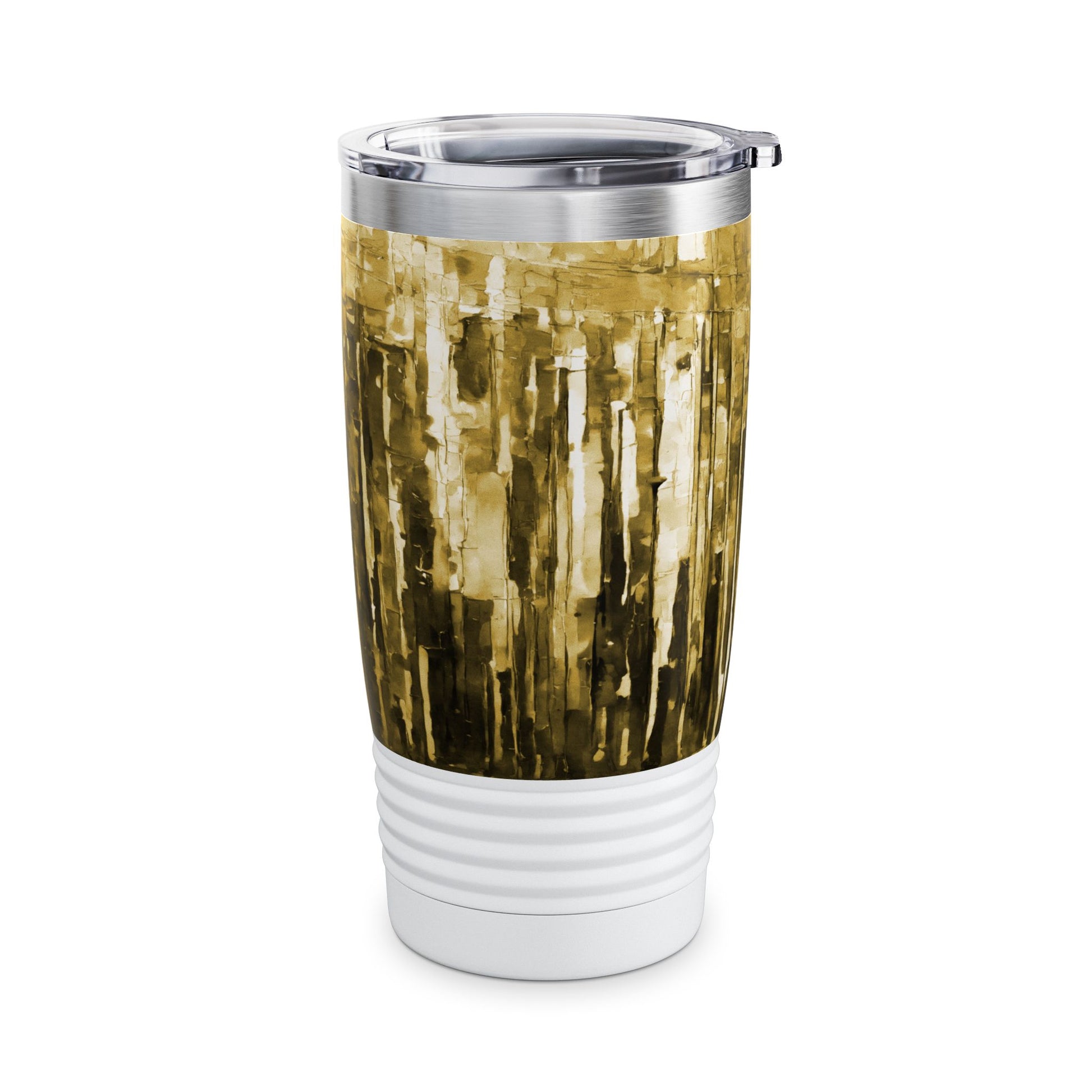 Striped Light Brown Ringneck Tumbler, 20oz in white, steel and black