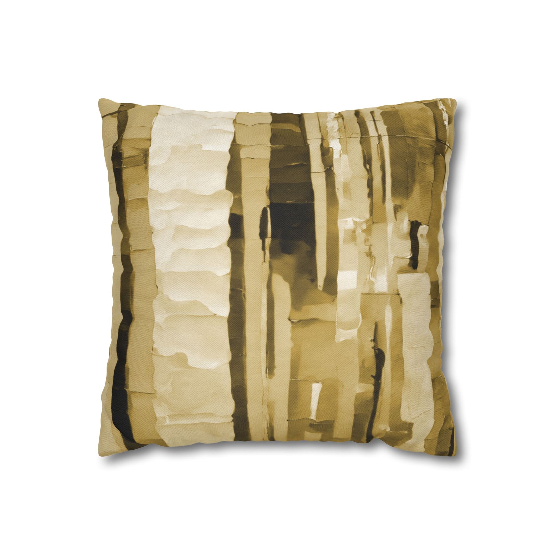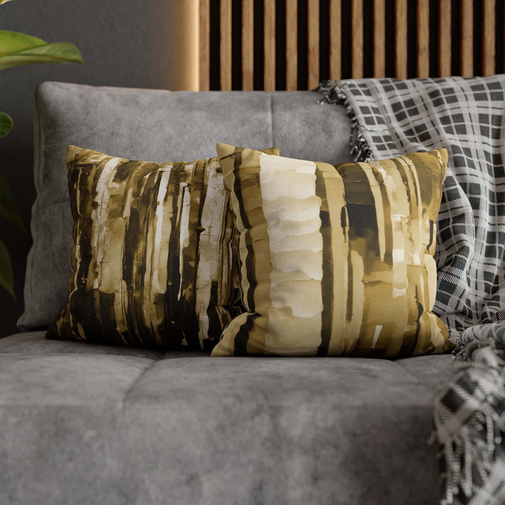 Striped Light Brown Spun Polyester Square Pillowcase, 14" x 14"