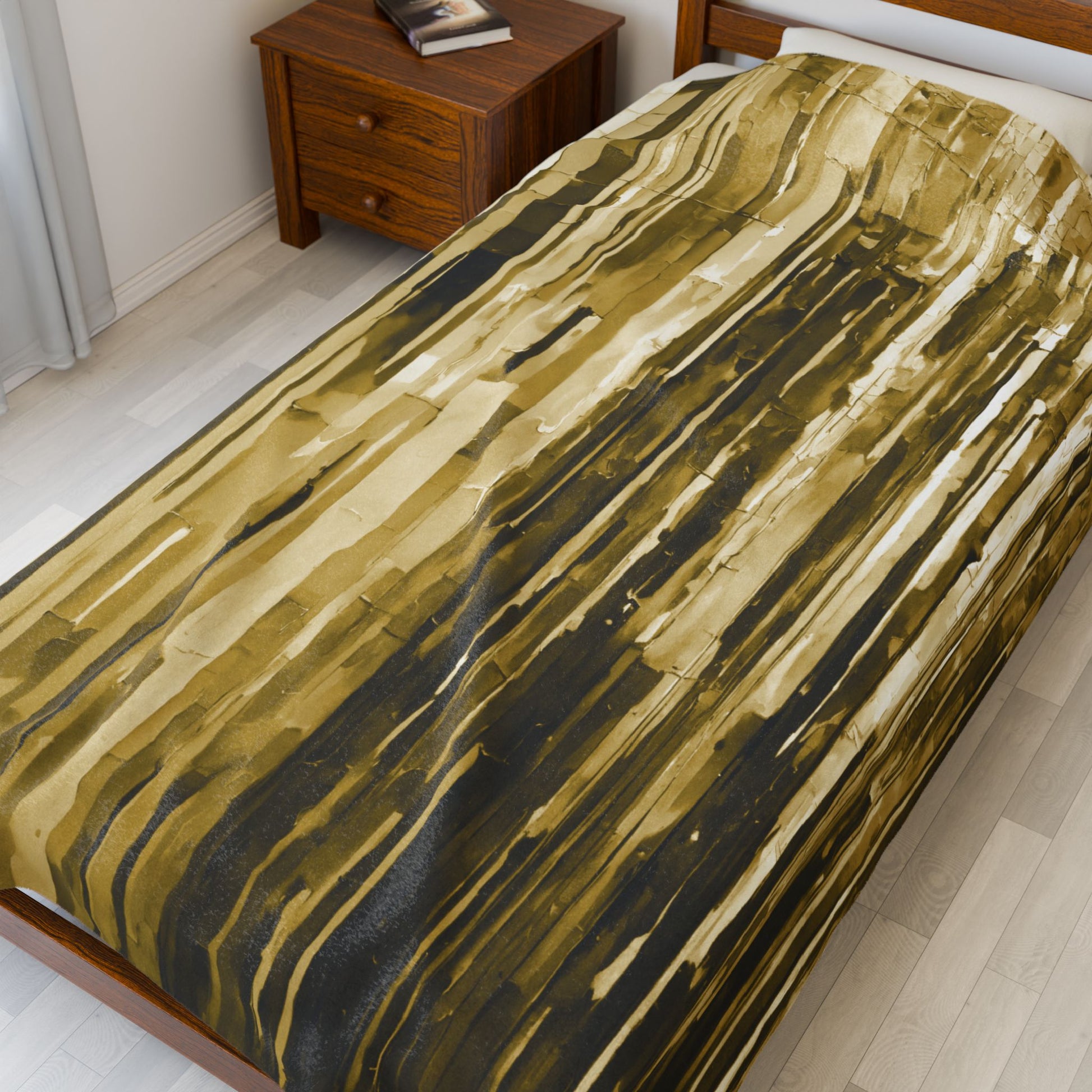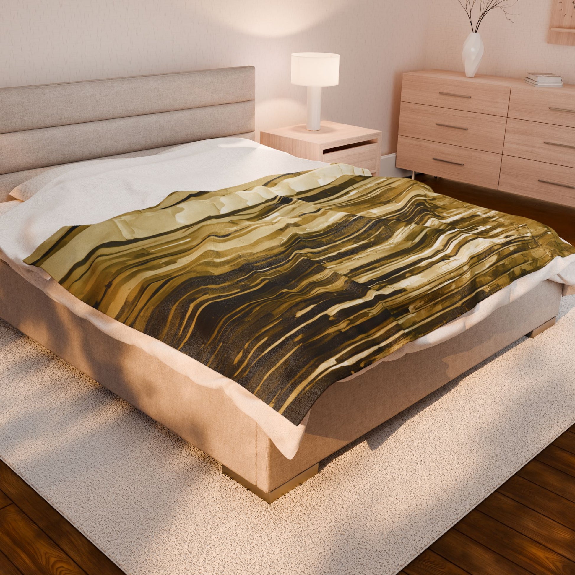 Striped Light Brown Velveteen Plush Blanket, 60" x 80"