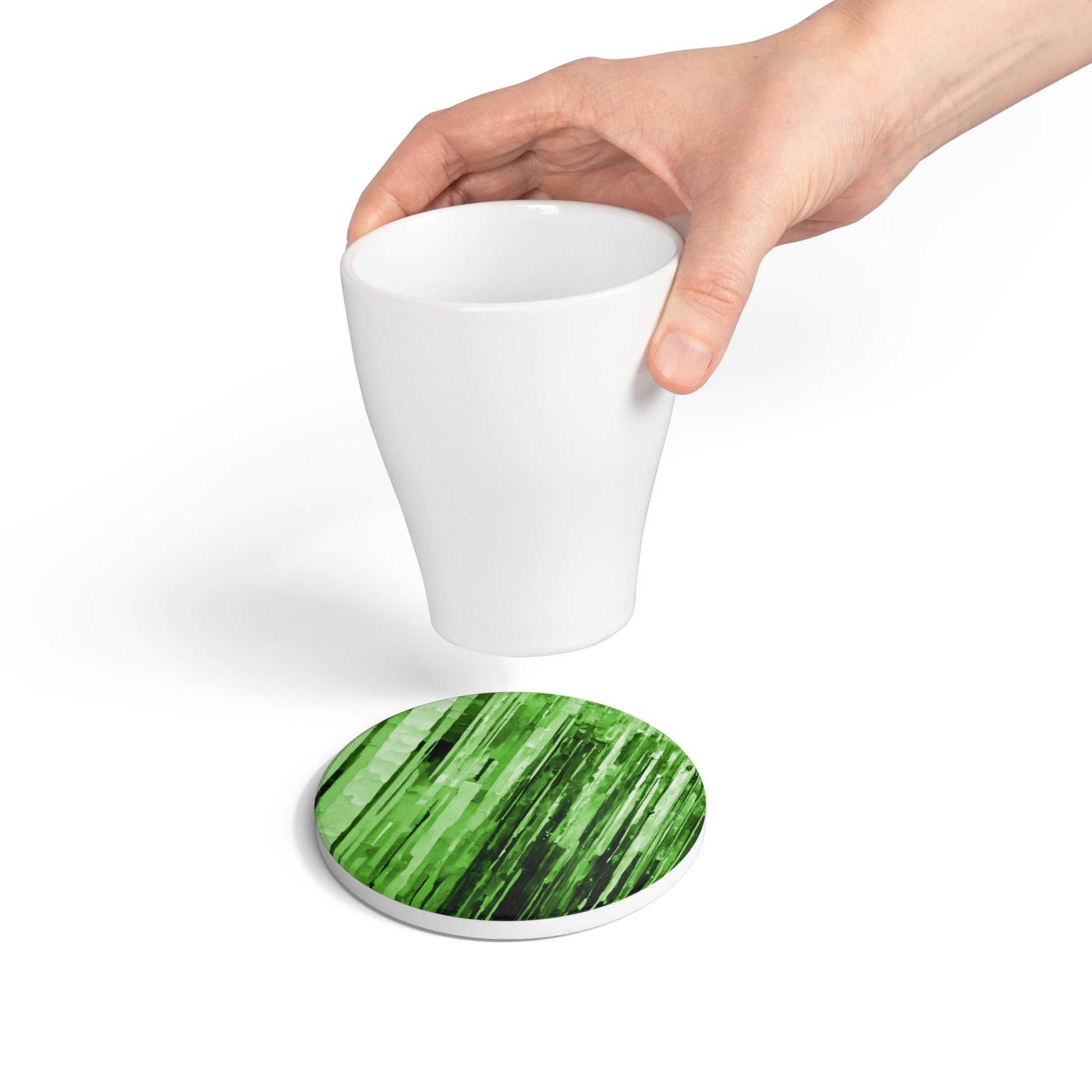 Striped Mint Pastel 4" x 4" Round Ceramic Coaster