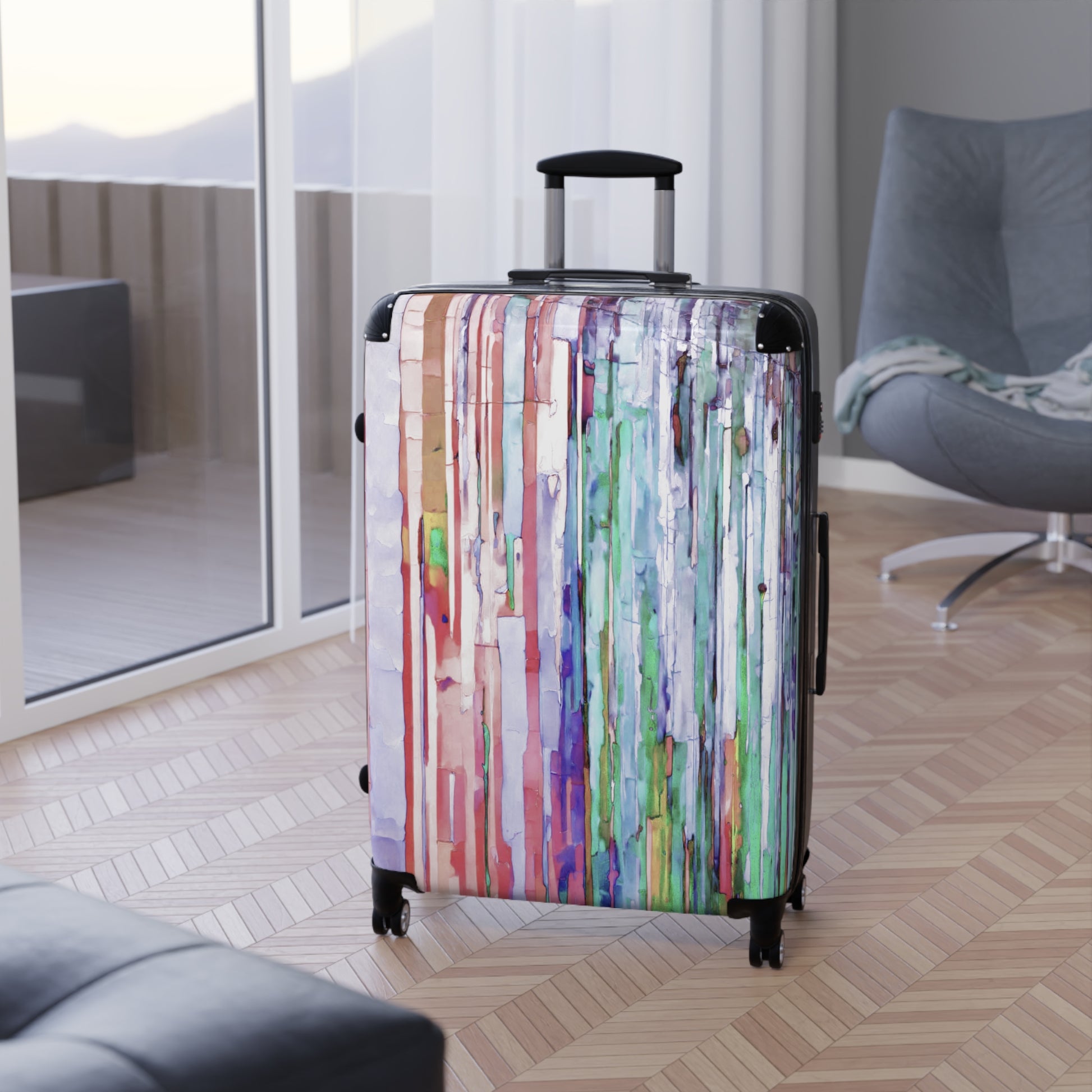 Striped Pastels Large Suitcase with built in lock, 4 double-wheels, telescopic handle, and ABS back hard-shell