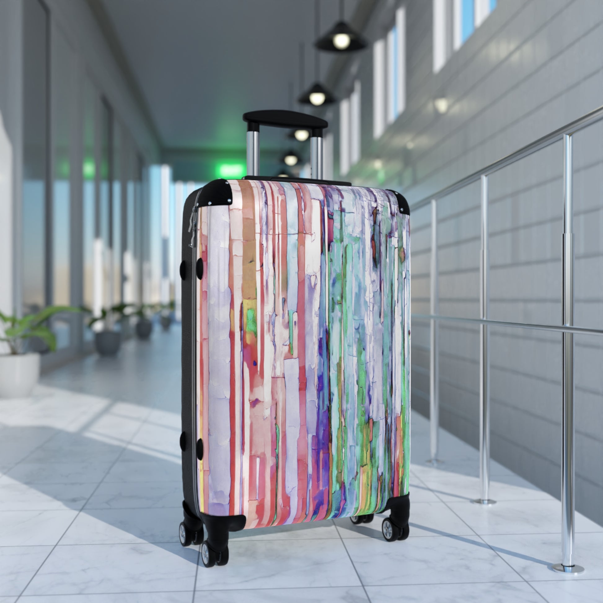 Striped Pastels Medium Suitcase with built in lock, 4 double-wheels, telescopic handle, and ABS back hard-shell