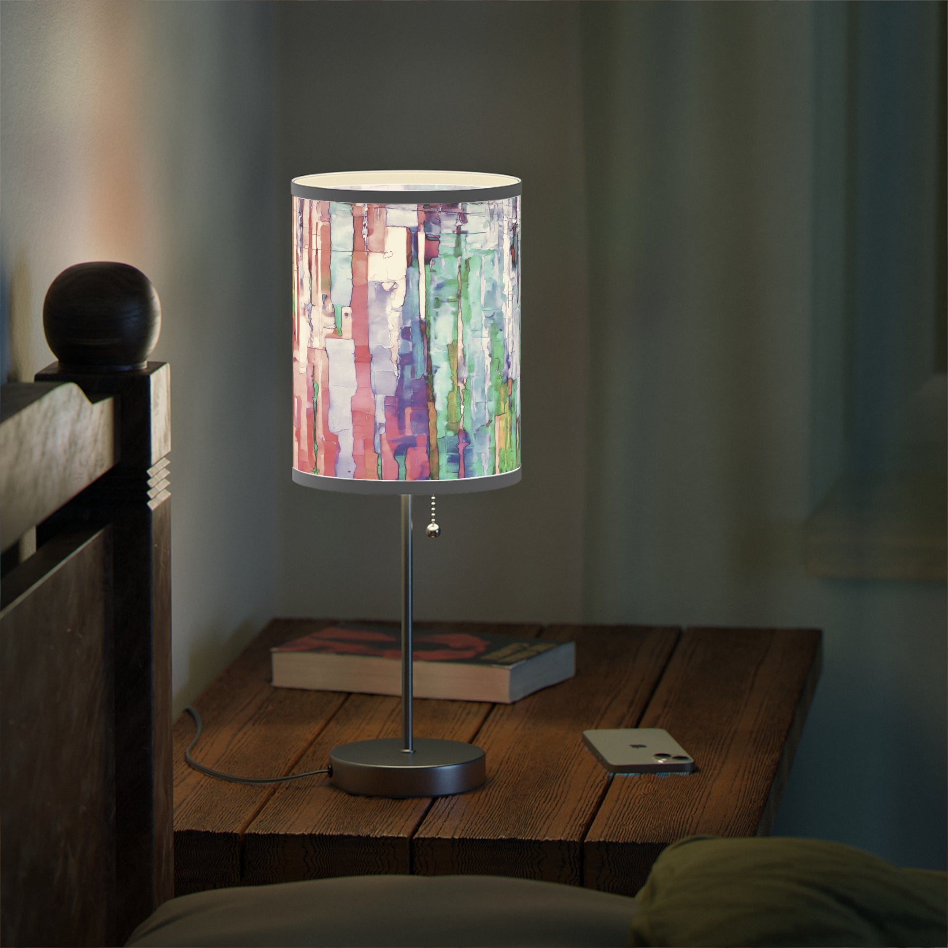 Striped Pastels Table Lamp on a White or Silver Stand, US|CA plug