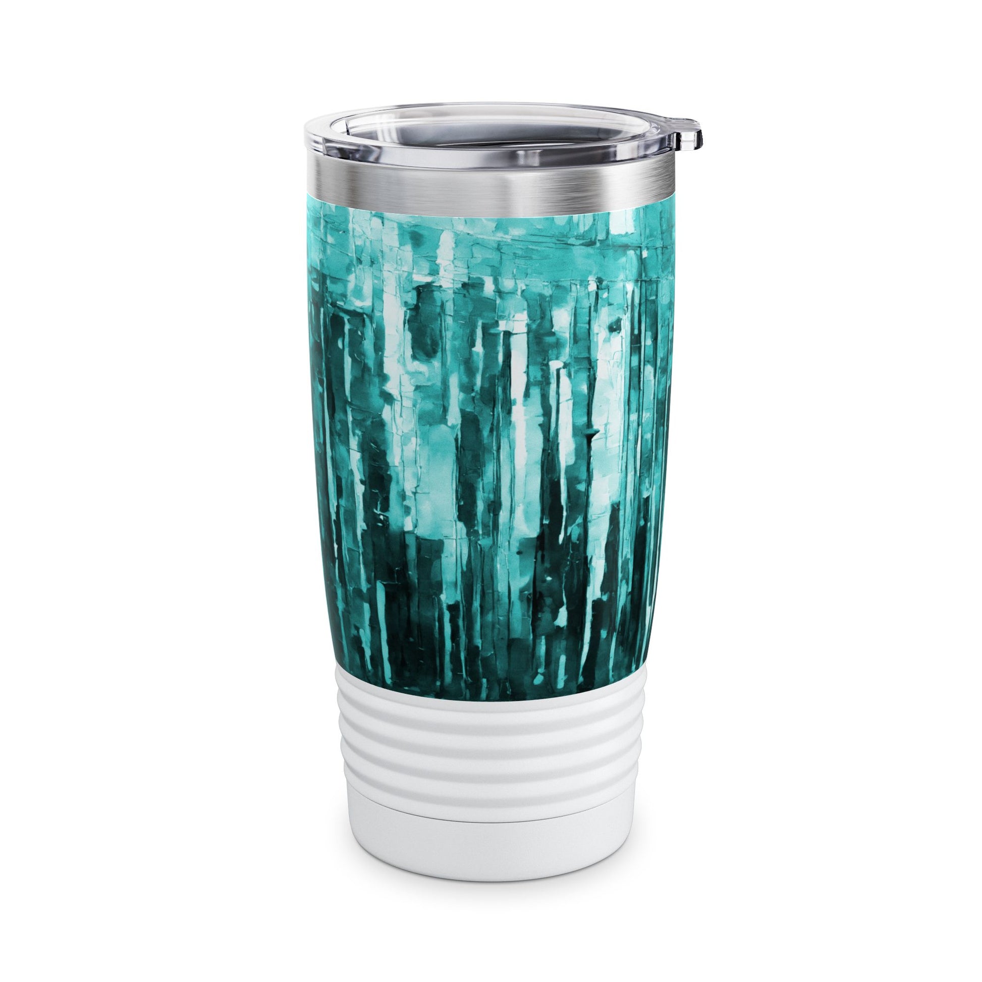 Striped Tif Ringneck Tumbler, 20oz in white, steel and black