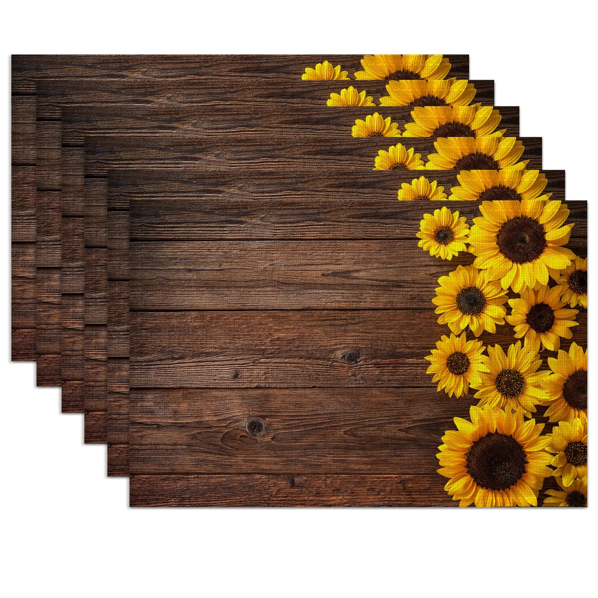 Set of 6 Sunflower Placemats – Washable, Heat-Resistant 12"×18" Inch Linen Table Mats for Outdoor Dining & Party Decor