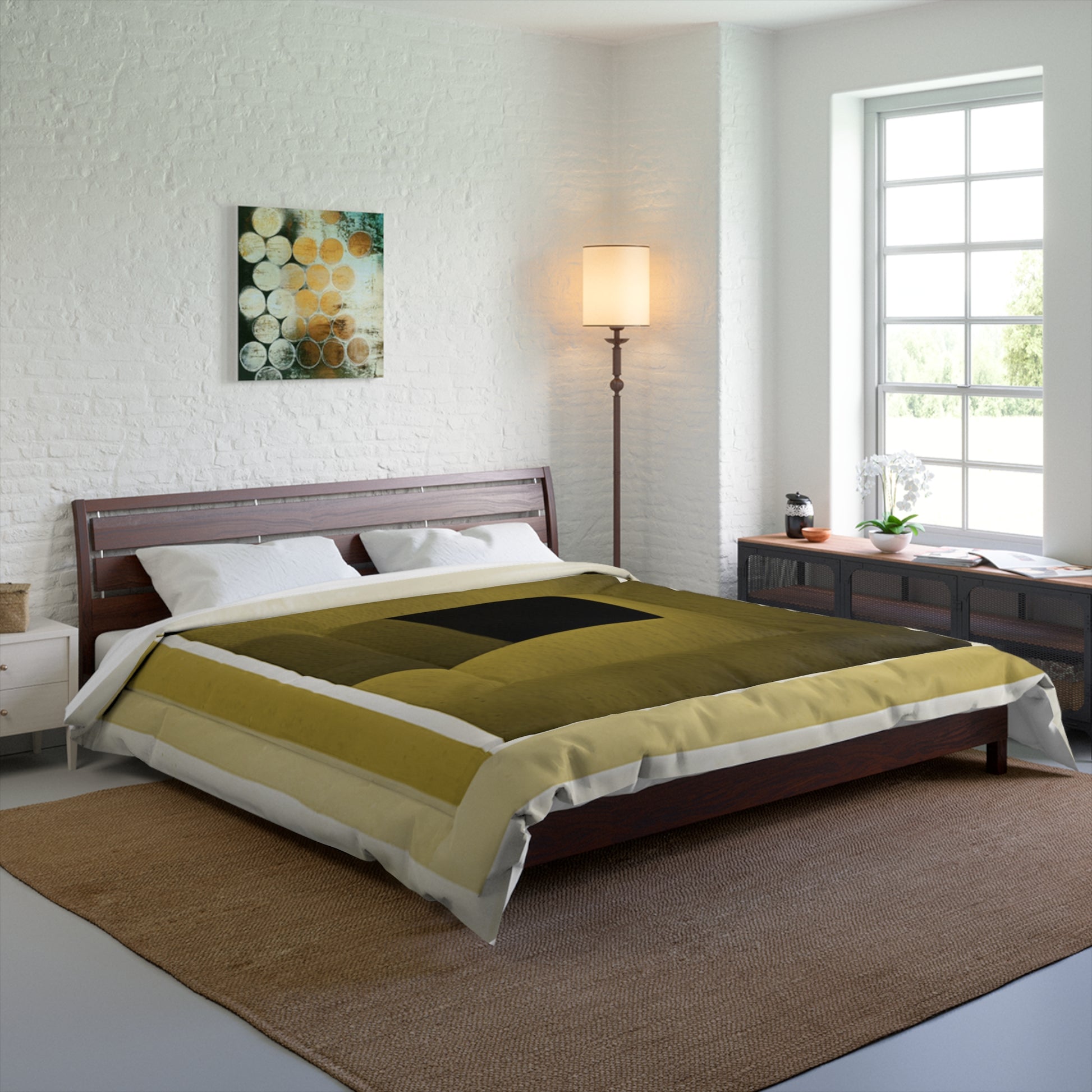 Soft, serene, and generously sized, this 104" x 88" comforter is your personal retreat. Cozy, breathable, and perfect for slow mornings or curling up with a good book, it brings cloudlike comfort to every night. Transform your bed into a plush, peaceful haven that invites rest and relaxation.