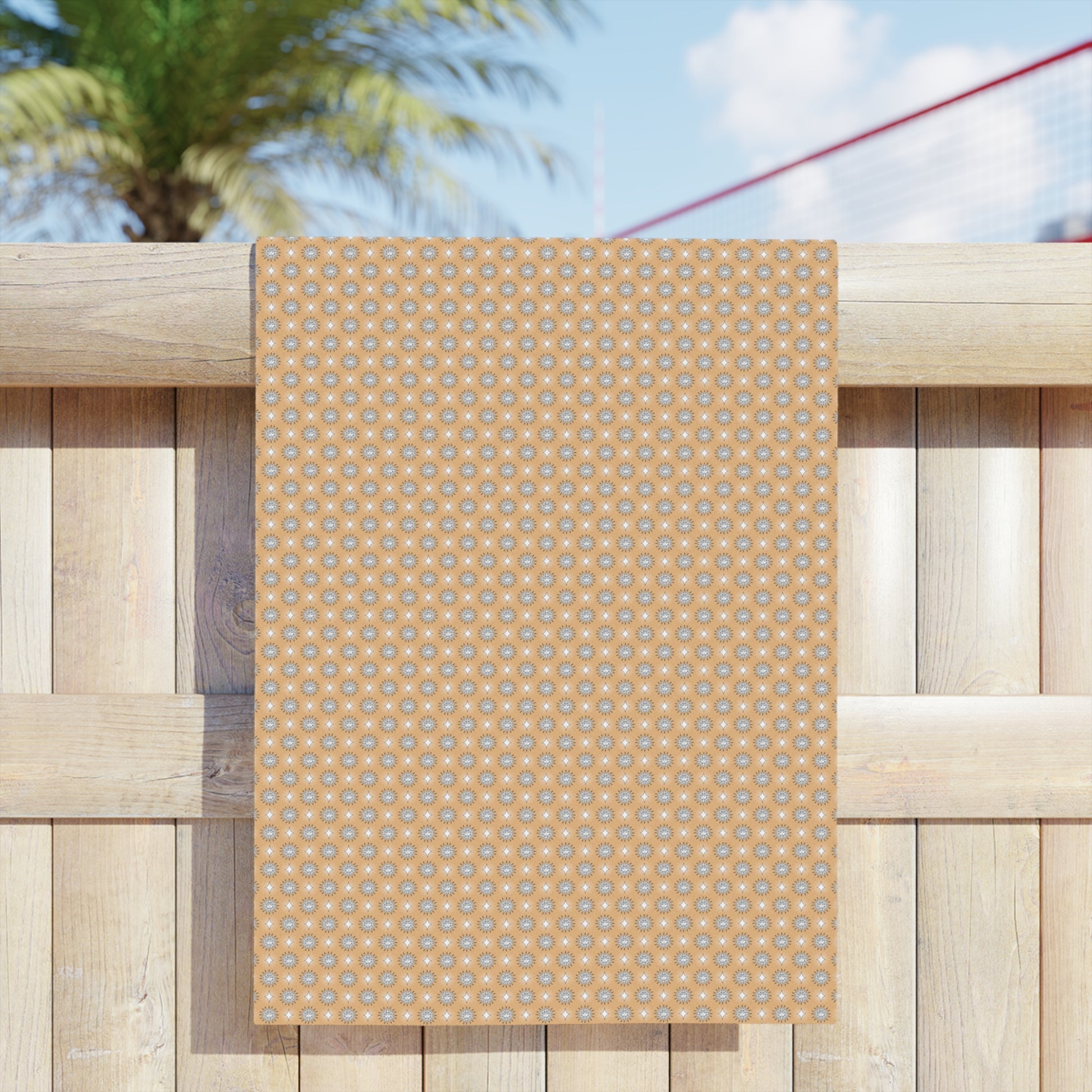 Tan Sunset Star-crossed Bodies Beach Towel, 24" x 44"